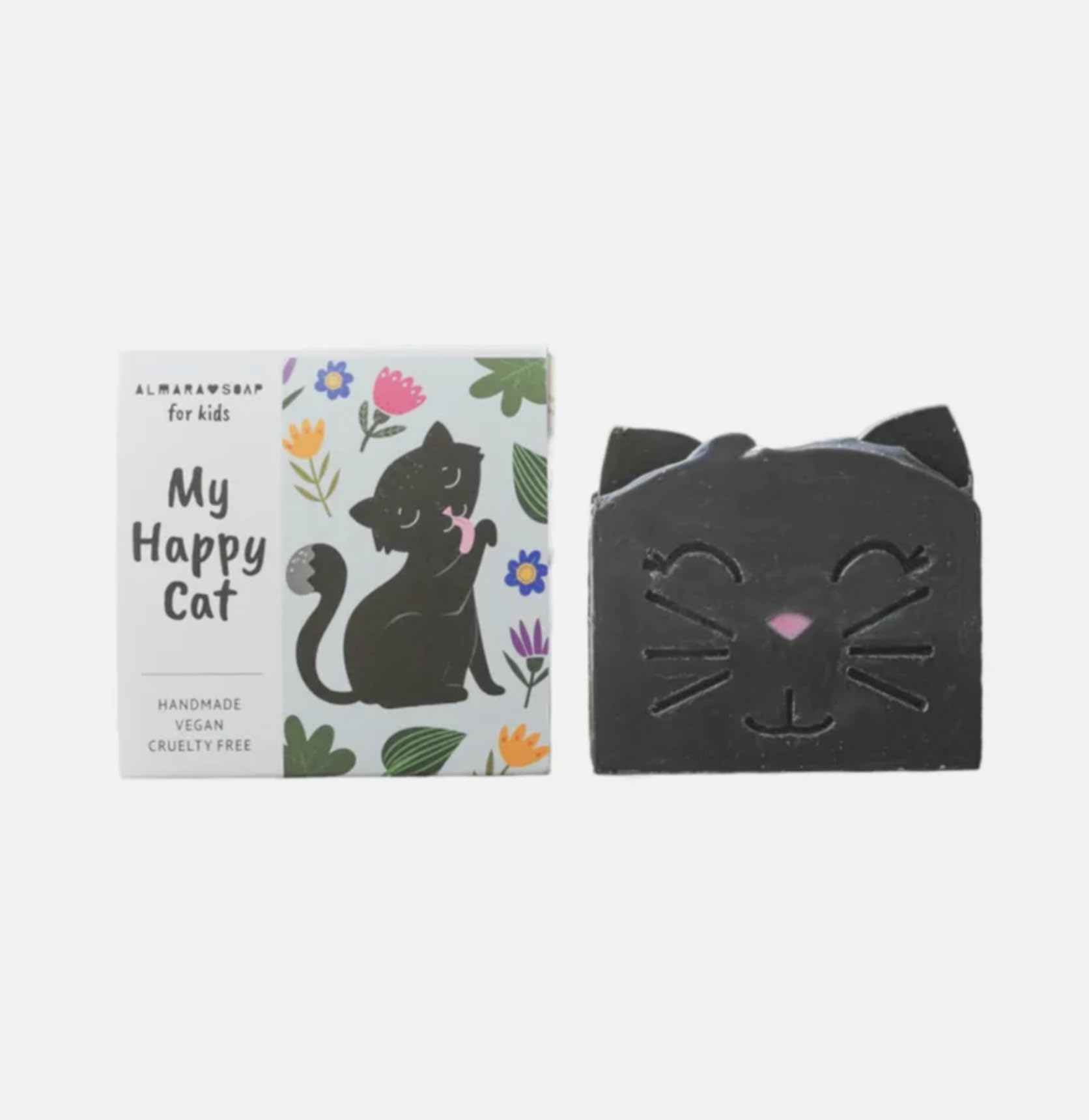 Almara Soap for Kids My Happy Cat Handmade Children's Soap with Peach Scent 100g Our cute black cat has many outstanding qualities: first, it's gorgeous, then it makes a soft, wonderfully peach-scented lather, it doesn't scratch, and it's very kind to clean children. But above all, it's very friendly, and even if someone thinks black cats bring bad luck, our kitten will show you that it's just a superstition! Thanks to the high concentration of carefully blended vegetable oils, the soap doesn't dry out and guarantees a very gentle and mild wash, leaving skin supple and nourished. The soap's beautiful color comes from mineral pigments. The soap is: 100 vegan, paraben-free, sulfate-free, and has no added glycerin. The soap is suitable for daily use on normal skin, body, hands, and face, from age 3. Gift-wrapped in a paper box. Weight: 100 5 g SAFETY WARNING Outdoor use onlyNo added glycerin. No sulfates. No parabens. 100 vegan.Almara Soap Pour enfants MY Happy CAT Savon artisanal pour enfants au parfum de pêche 100 gDESCRIPTION DU PRODUIT DESCRIPTION DU PRODUIT Almara Soap for Kids My Happy Cat Savon artisanal pour enfants au parfum de pêche 100 g Notre joli chat noir a de nombreuses qualités exceptionnelles : pour commencer, il est magnifique, puis fait une mousse douce et super parfumée de pêche, ne raye pas et est très amical des enfants propres. Mais surtout c'est très sympathique, et même si quelqu'un pense que les chats noirs portent de la malchance, notre chaton vous montrera que c'est juste une superstition ! Grâce à la forte concentration d'huiles végétales soigneusement mélangées, le savon ne sèche pas et garantit un lavage très doux et doux, laissant la peau élastique et nourrie. La belle couleur du savon est donnée par des colorants minéraux. Le savon est : 100 végétalien sans parabène sans sulfates sans glycérine ajoutée Le savon est adapté pour un usage quotidien sur les peaux normales, le corps, les mains et le visage, à partir de 3 ans. Emballage cadeau dans une boîte en papier. Poids : 100 5 g AVERTISSEMENT DE SÉCURITÉ Usage extérieur uniquementSans glycérine ajoutée. Sans sulfates. Sans paraben. 100 végétalien.