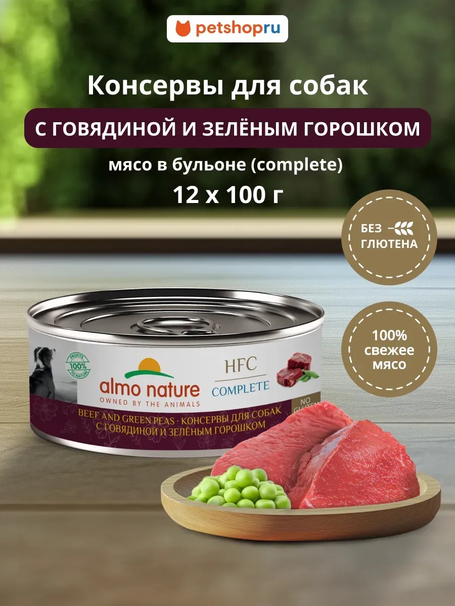ALMO NATURE консервы для собак и щенков с говядиной и горошком, 12х100 г
