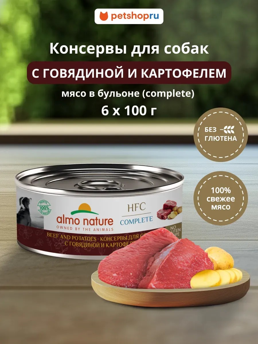 ALMO NATURE консервы для собак и щенков с говядиной и картофелем,6х100 г