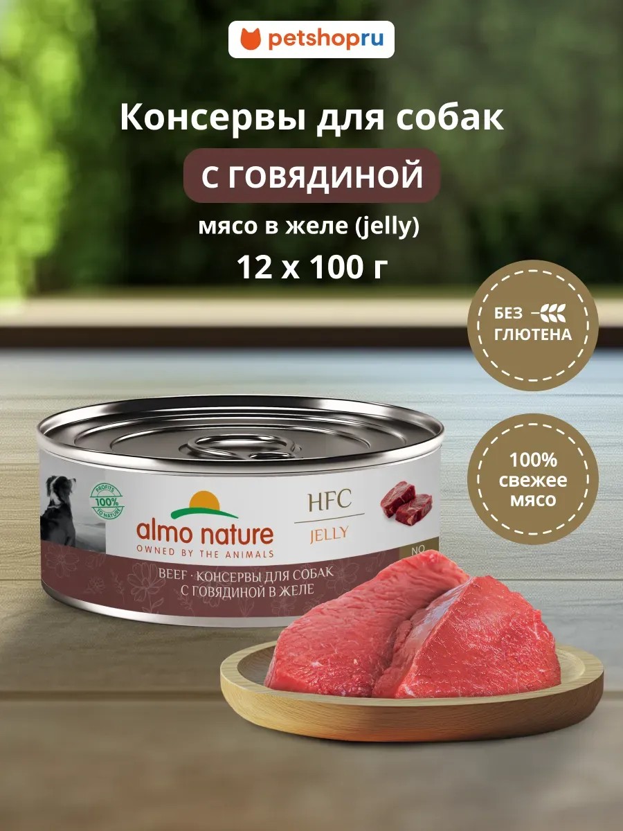 ALMO NATURE консервы для собак и щенков с говядиной в желе, 12х100 г