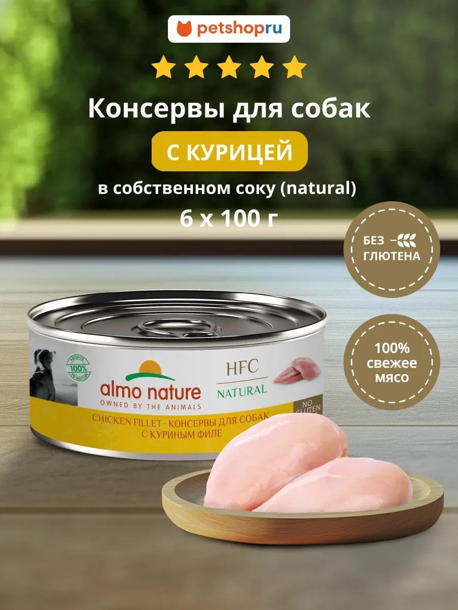 ALMO NATURE Консервы для собак и щенков с куриным филе, 6х100 г