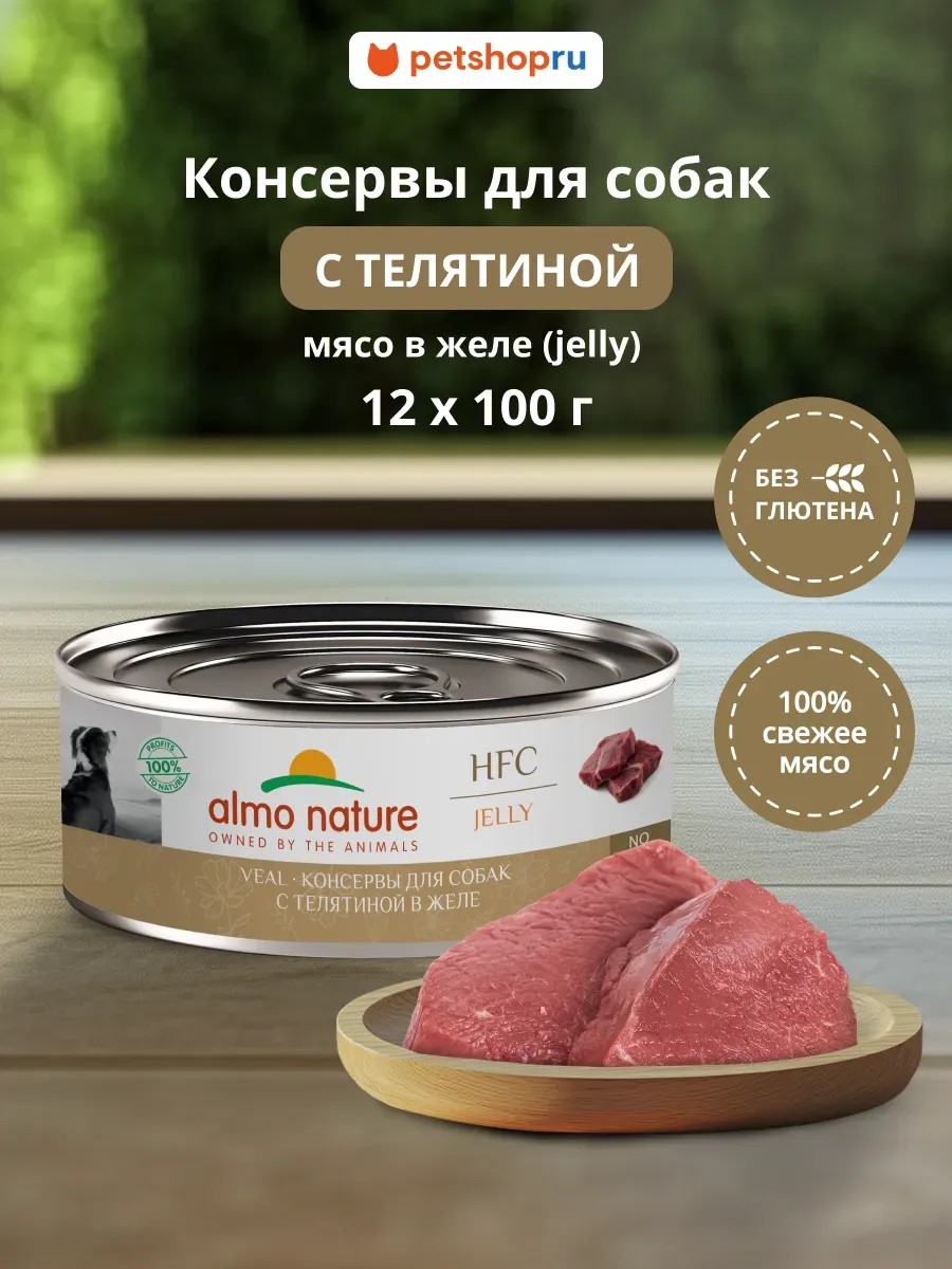 ALMO NATURE консервы для собак и щенков с телятиной в желе, 12х100 г