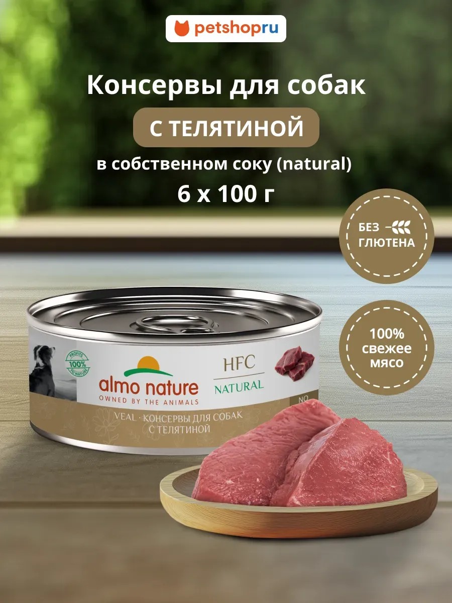 ALMO NATURE Консервы для собак и щенков с телятиной, 6х100 г