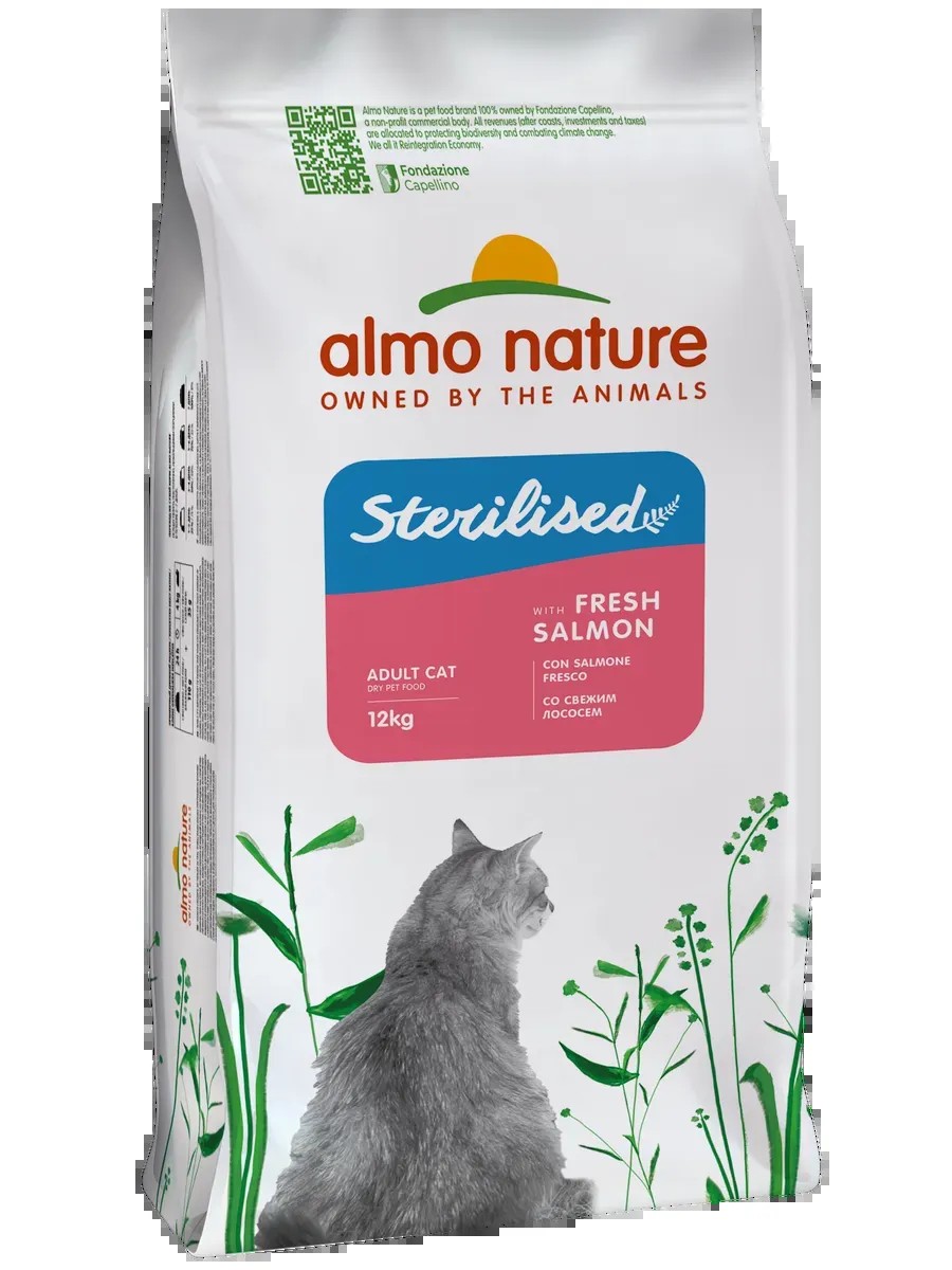 ALMO NATURE Сухой корм для стерил. кошек со свежим лососем и рисом, 12кг