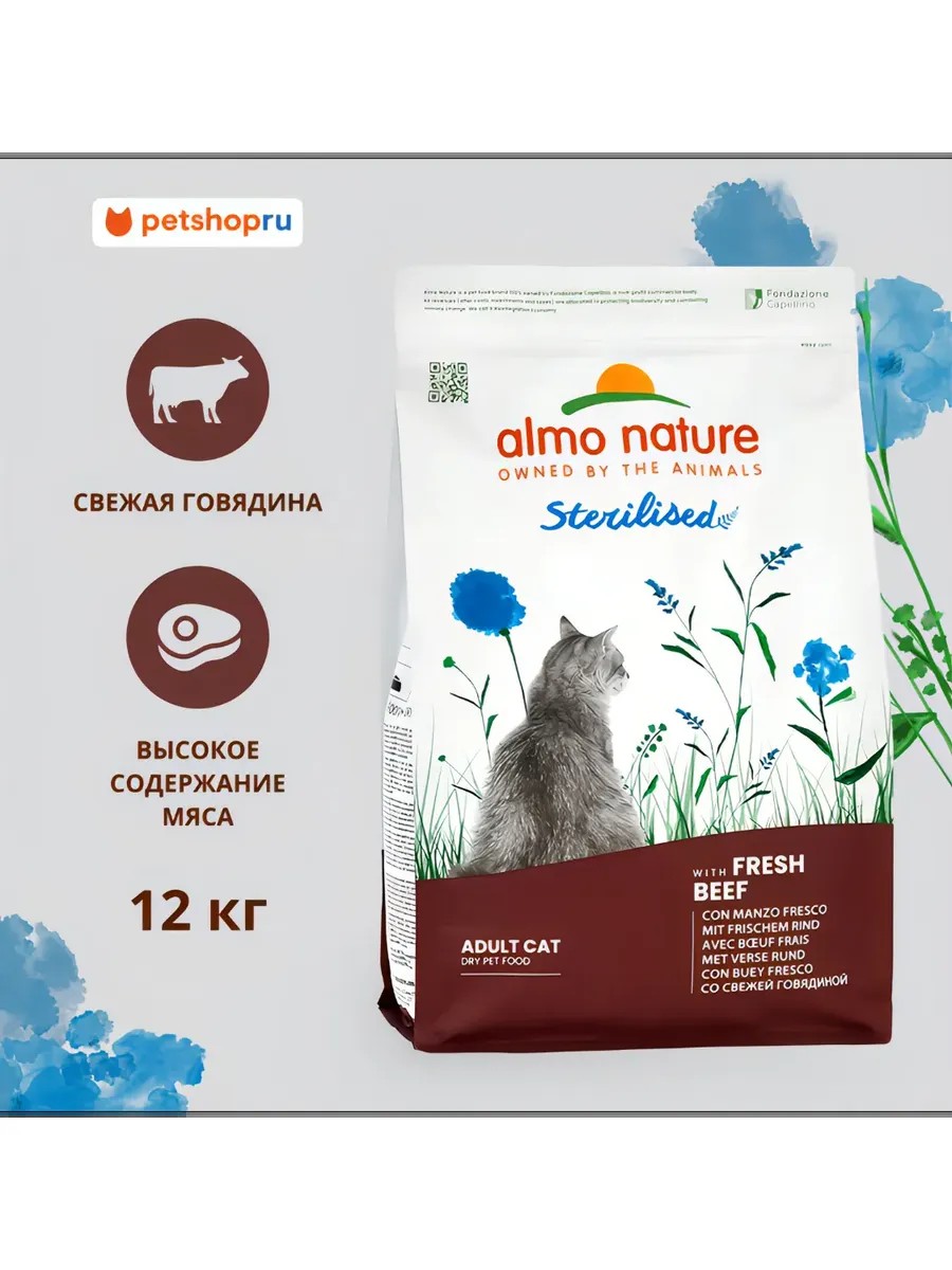 ALMO NATURE Корм для стерилизованных кошек с говядиной Sterilised, 12 кг