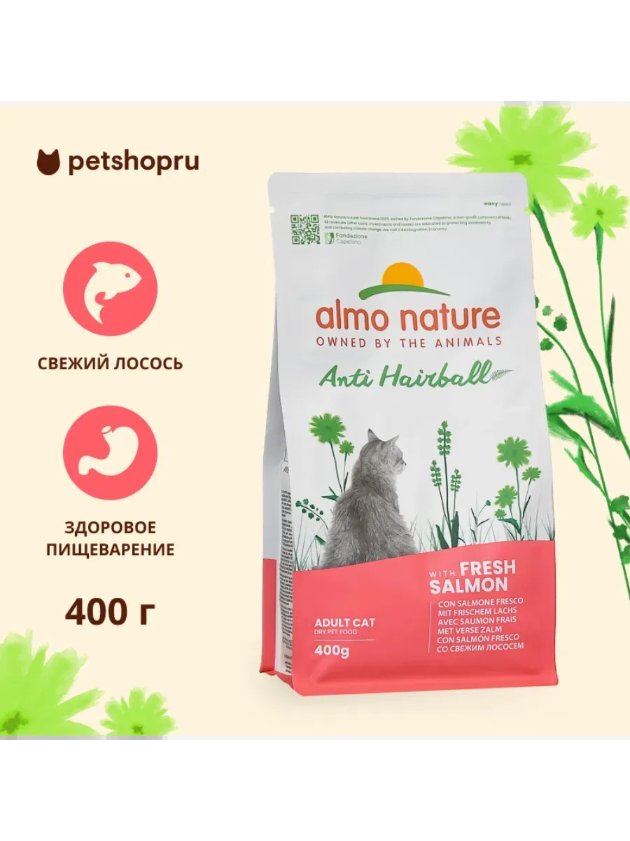 ALMO NATURE Корм для кошек с лососем Salmon Anti Hairball, 0,4кг