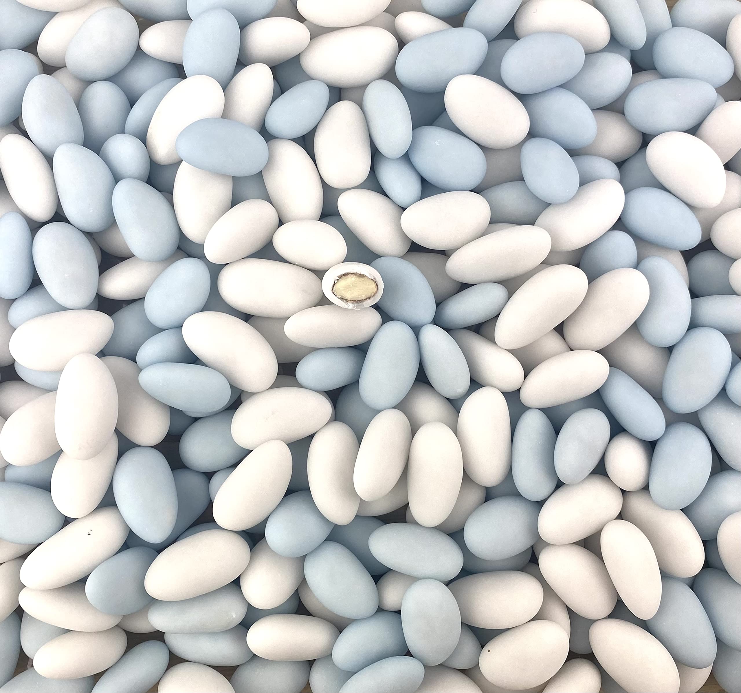 White and blue colors - natural colors. 22 almonds. 100 handcrafted in France.Coloris blanc et bleu - colorants naturels. Dragées 22 d'amandes. Dragées fabriquées de façon 100 artisanale en France.