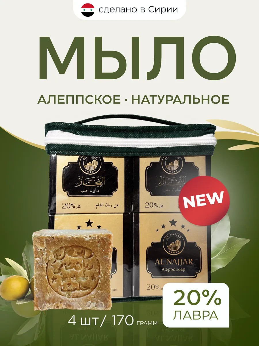 ALNAJJAR Сумка мыло 20% лавра алеппское оливковое 4 шт