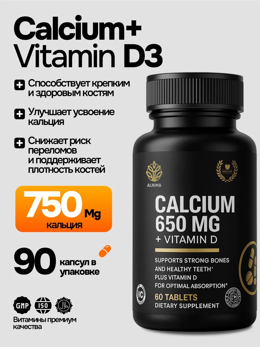 Укрепляйте свой организм ежедневно с Alnima Calcium 650 мг + Vitamin D3 – премиальным комплексом витаминов и минералов, произведённым в США по строгим международным стандартам FDA, GMP и GFSI. Эта формула сочетает два жизненно важных нутриента: кальций – фундамент крепких костей и зубов, и витамин D3 – ключевой элемент, обеспечивающий оптимальное усвоение кальция, здоровье суставов и поддержание работы сердечно-сосудистой и нервной систем.