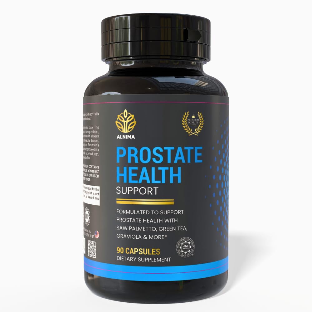 ALNIMA – WHERE PURITY MEETS STRENGTH – A U.S.-based brand dedicated to creating Halal Certified, high-quality supplements that blend science, tradition, and care. PURE, CLEAN, AND EFFECTIVE – Free from GMOs, gluten, soy, and preservatives — a trusted choice for men who value transparency and quality in their supplements. DAILY MEN'S WELLNESS SUPPORT – Designed for men over 40 seeking to maintain urinary comfort, hormonal balance, and confidence in overall vitality. MADE IN THE USA QUALITY – Manufactured in FDA-registered, GMP-compliant facilities using globally sourced premium ingredients to guarantee safety and reliability. HALAL CERTIFIED NON-GMO FORMULA – Produced according to Halal ISA standards, ensuring no pork, no alcohol, and no artificial additives — pure and ethical nutrition. PLANT STEROLS GREEN TEA POWER – Enriched with natural antioxidants that help protect cells from oxidative stress and support long-term prostate health. ZINC SELENIUM FOR MEN'S WELLNESS – Two essential minerals that strengthen immunity, reproductive function, and cellular protection for male vitality. SAW PALMETTO PYGEUM EXTRACTS – Traditional herbal ingredients that naturally support prostate size and healthy hormone levels in adult men. SUPPORTS HEALTHY URINARY FLOW – Helps maintain normal urinary frequency and comfort, promoting healthy bladder control and optimal prostate function. ADVANCED HALAL PROSTATE SUPPORT – Scientifically developed formula for men's prostate and urinary health, combining Saw Palmetto, Zinc, Selenium Plant Sterols for daily balance.