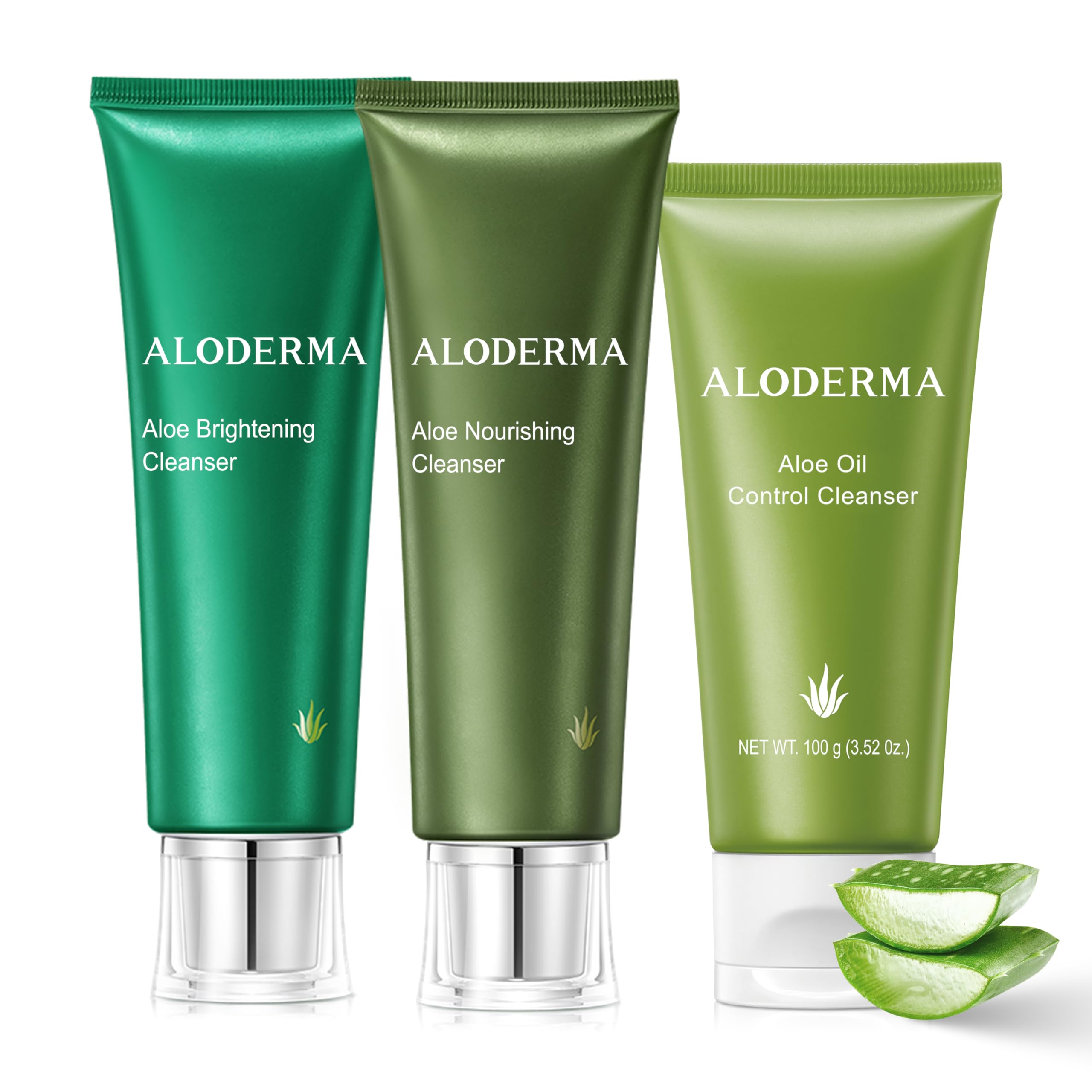 Aloderma Aloe Cleanser Set 3 Pieces - Nourishing Brightening Oil Controlling Cleansers - Face Wash Set