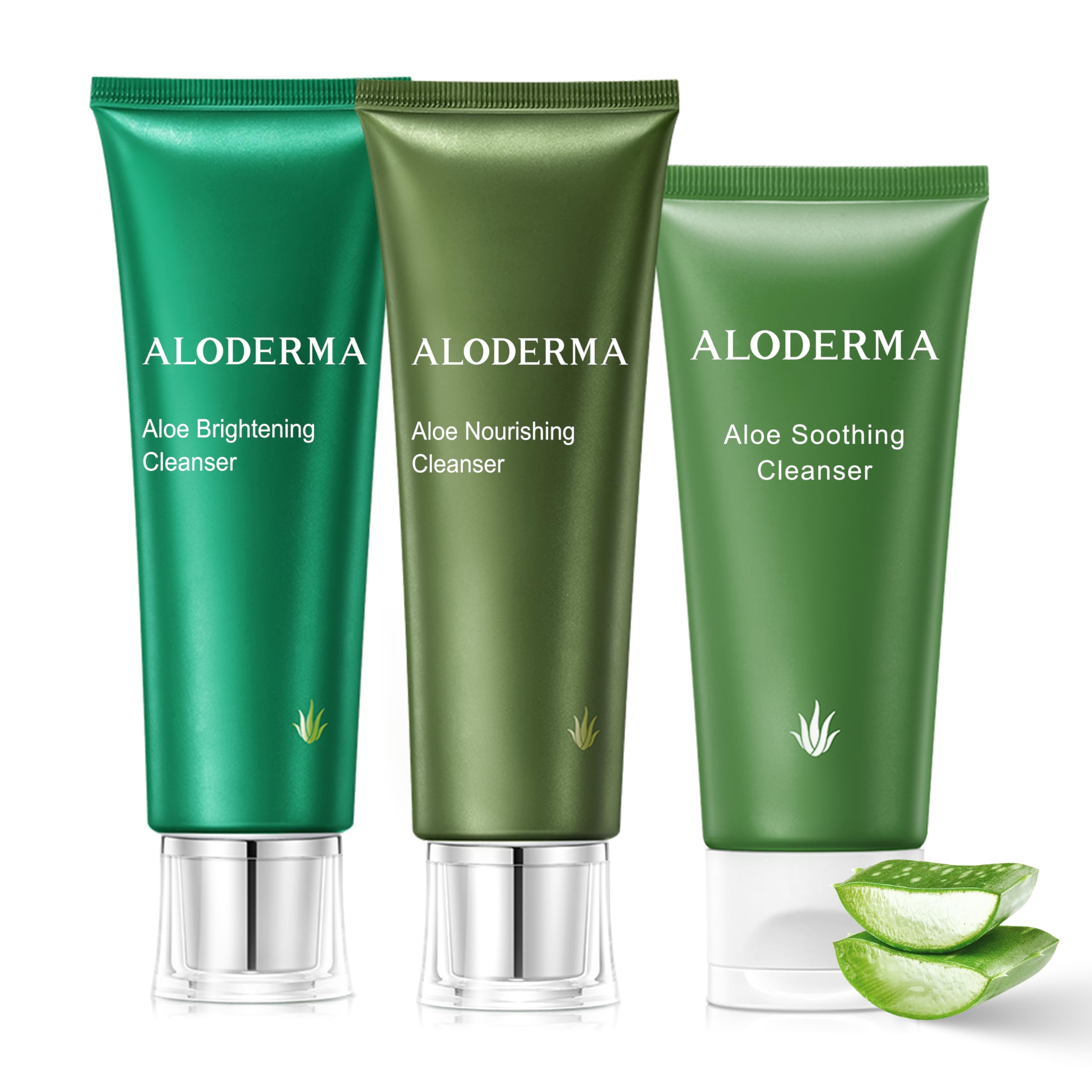 Aloderma Aloe Cleanser Set 3 Pieces - Nourishing Soothing Brightening Cleansers - Face Wash Set