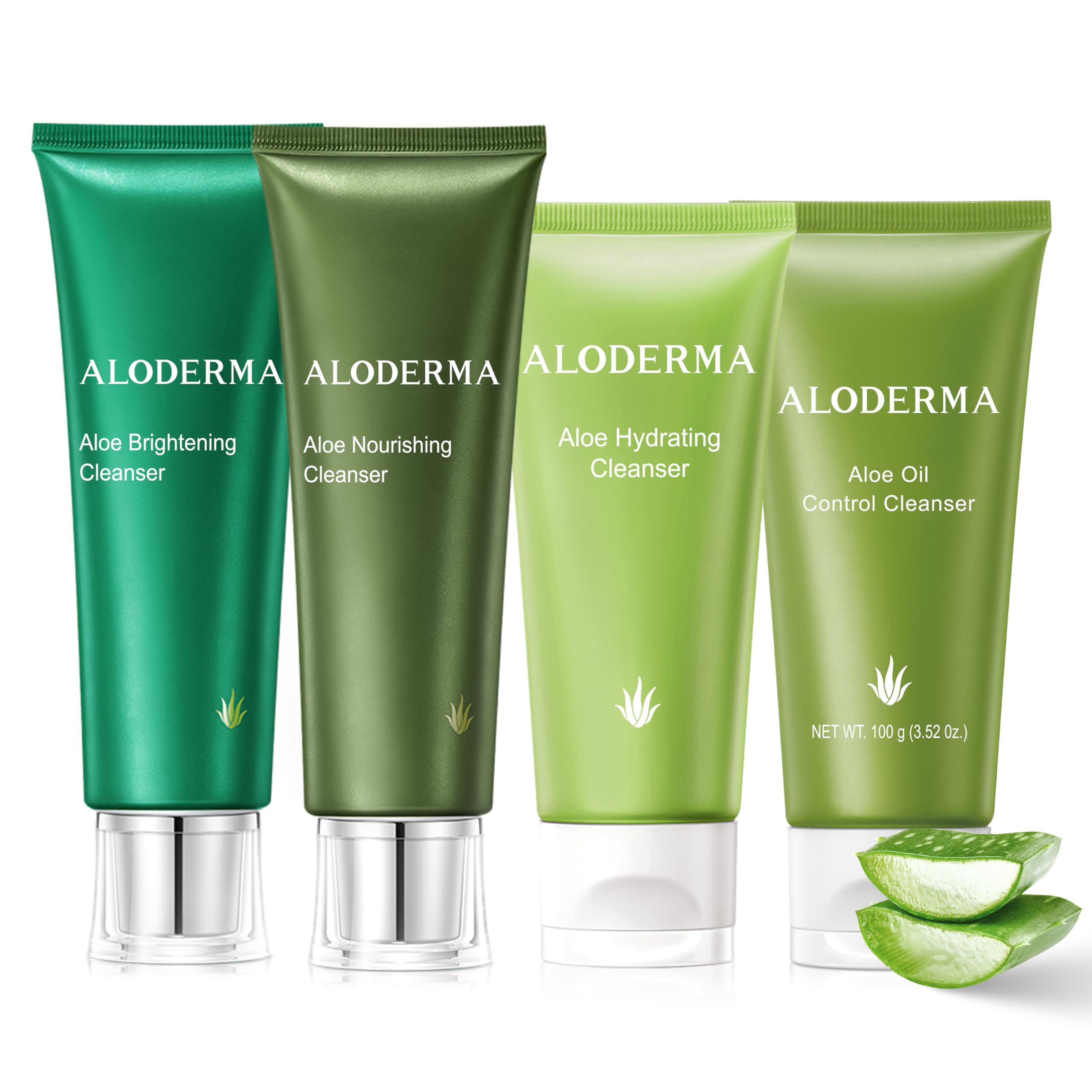 Aloderma Aloe Cleanser Set, 4 Pieces - Hydrating, Nourishing, Brightening, Oil Control Cleansers