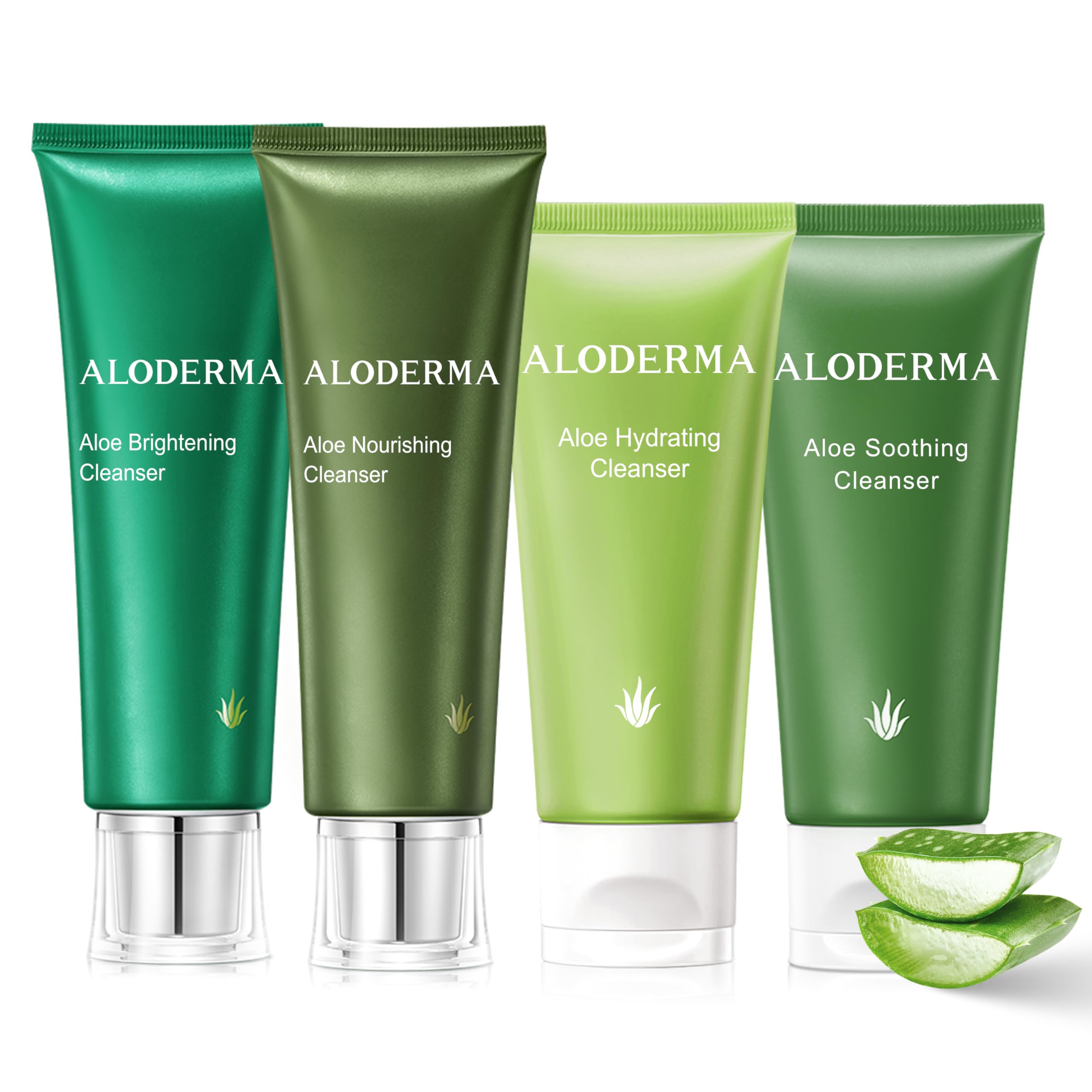 Aloderma Aloe Cleanser Set 4 Pieces - Hydrating Nourishing Soothing Brightening Cleansers