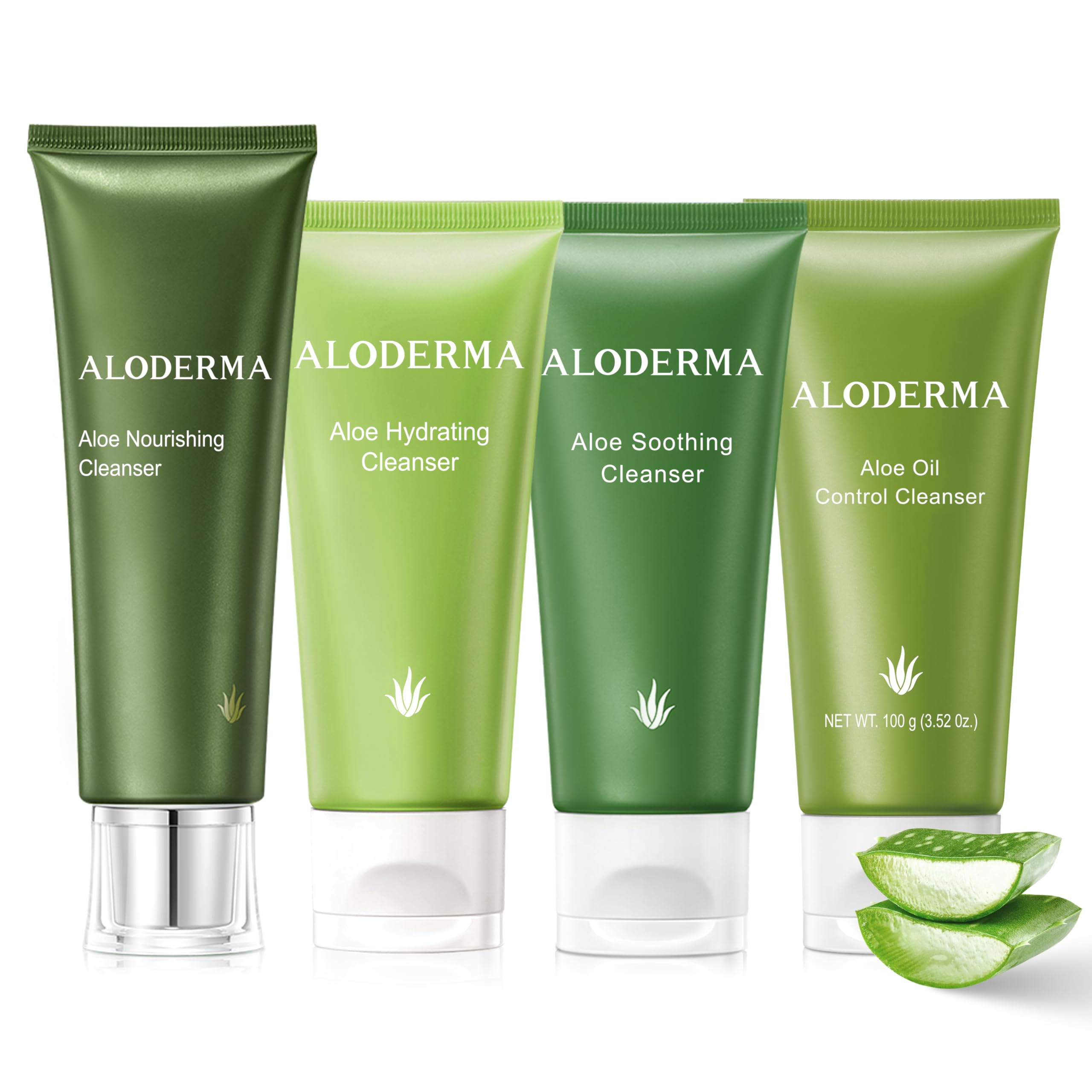 Aloderma Aloe Cleanser Set, 4 Pieces - Hydrating, Nourishing, Soothing, Oil Control Cleansers - Face Wash Set