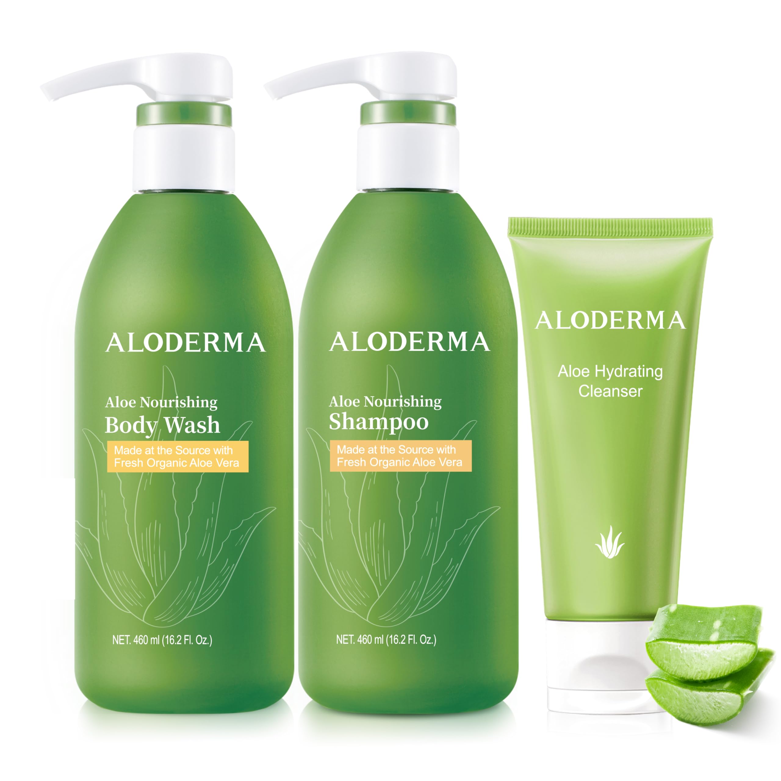 Aloderma Aloe Shower Set - Nourishing Body Wash Nourishing Shampoo Hydrating Facial Cleanser - Hydrating Moisturizing