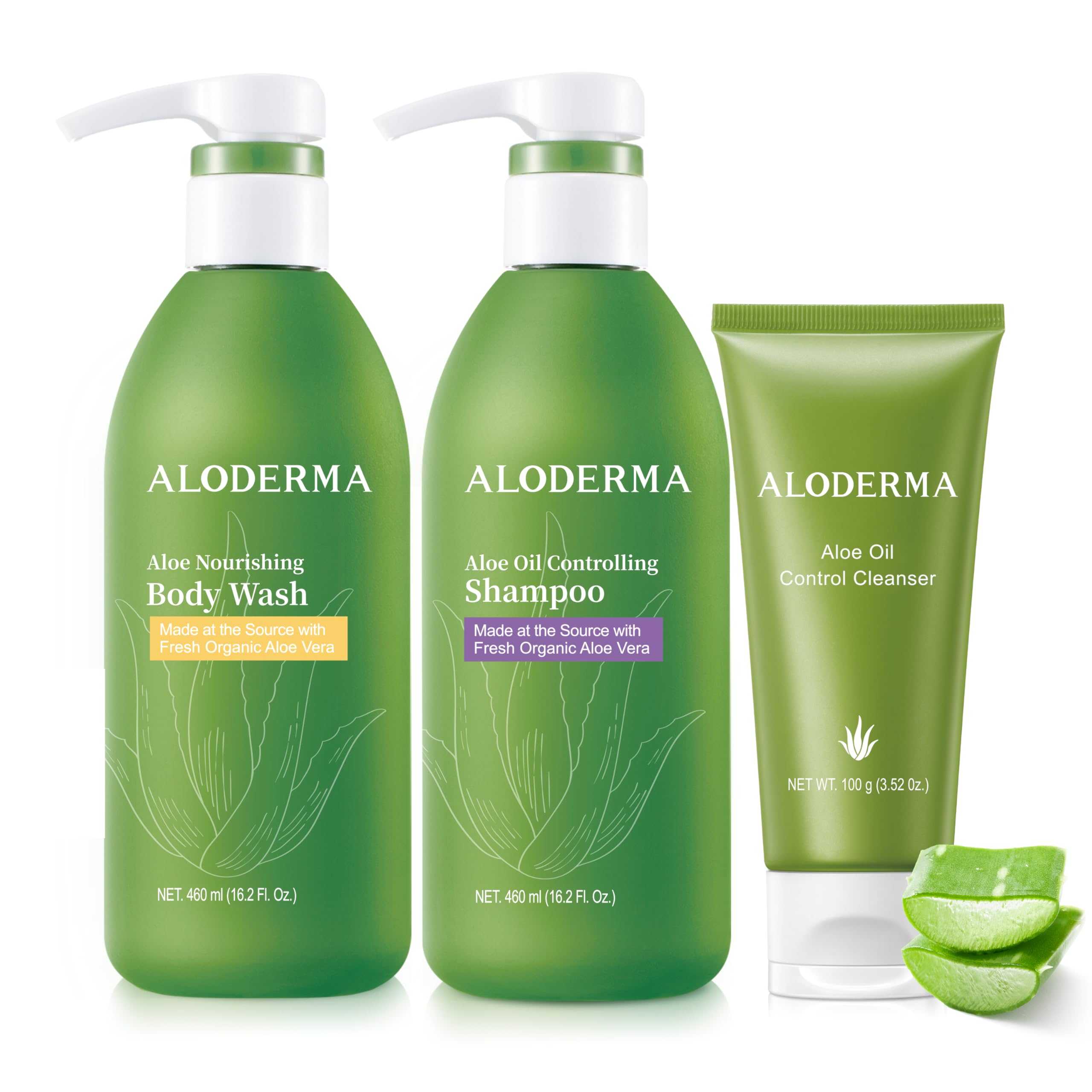 Aloderma Aloe Shower Set - Nourishing Body Wash Oil Controlling Shampoo Oil Controlling Facial Cleanser