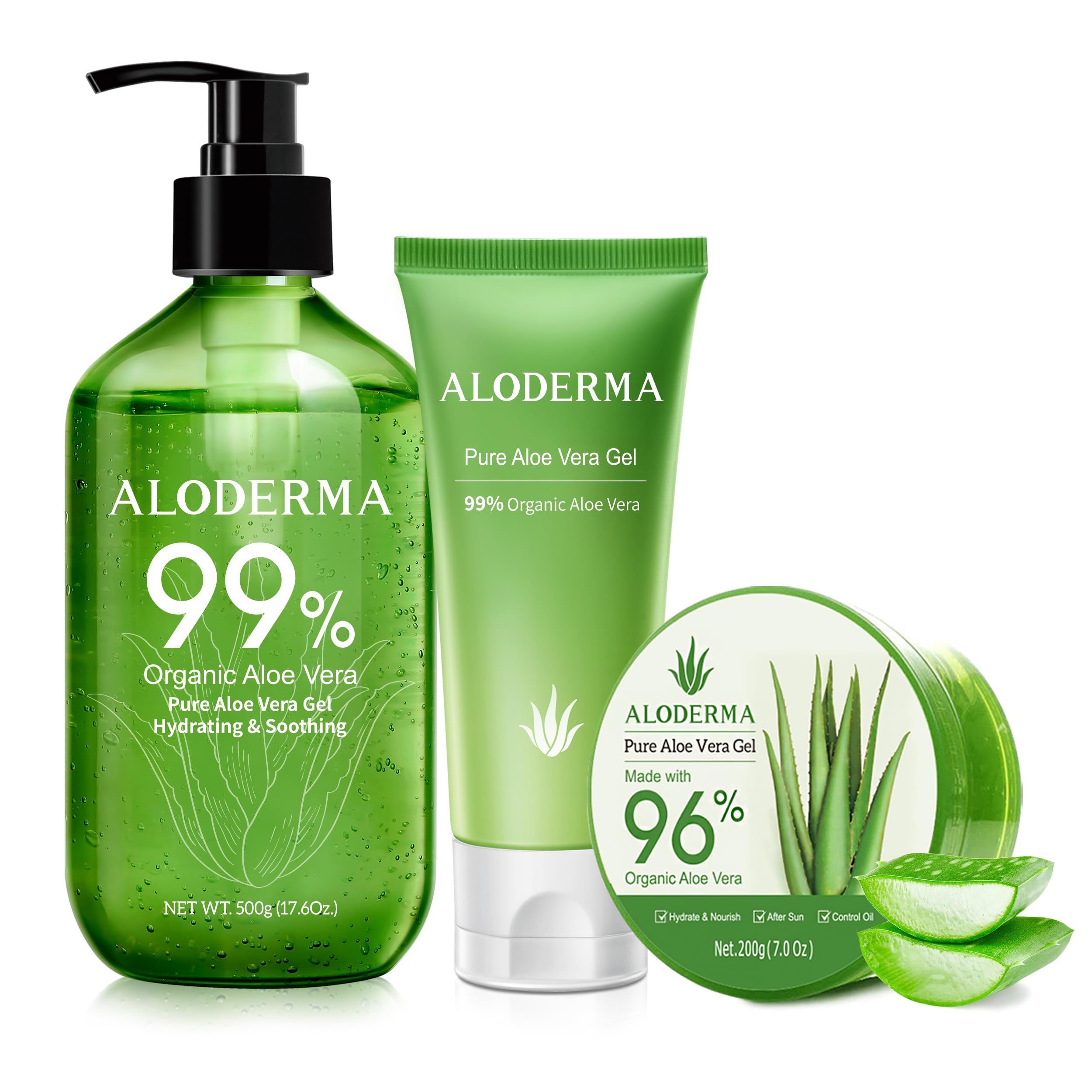 Aloderma Aloe Vera Gel Set 3 Pieces - 500g Aloe Vera Gel 200g Aloe Vera Gel 114g Aloe Vera Gel