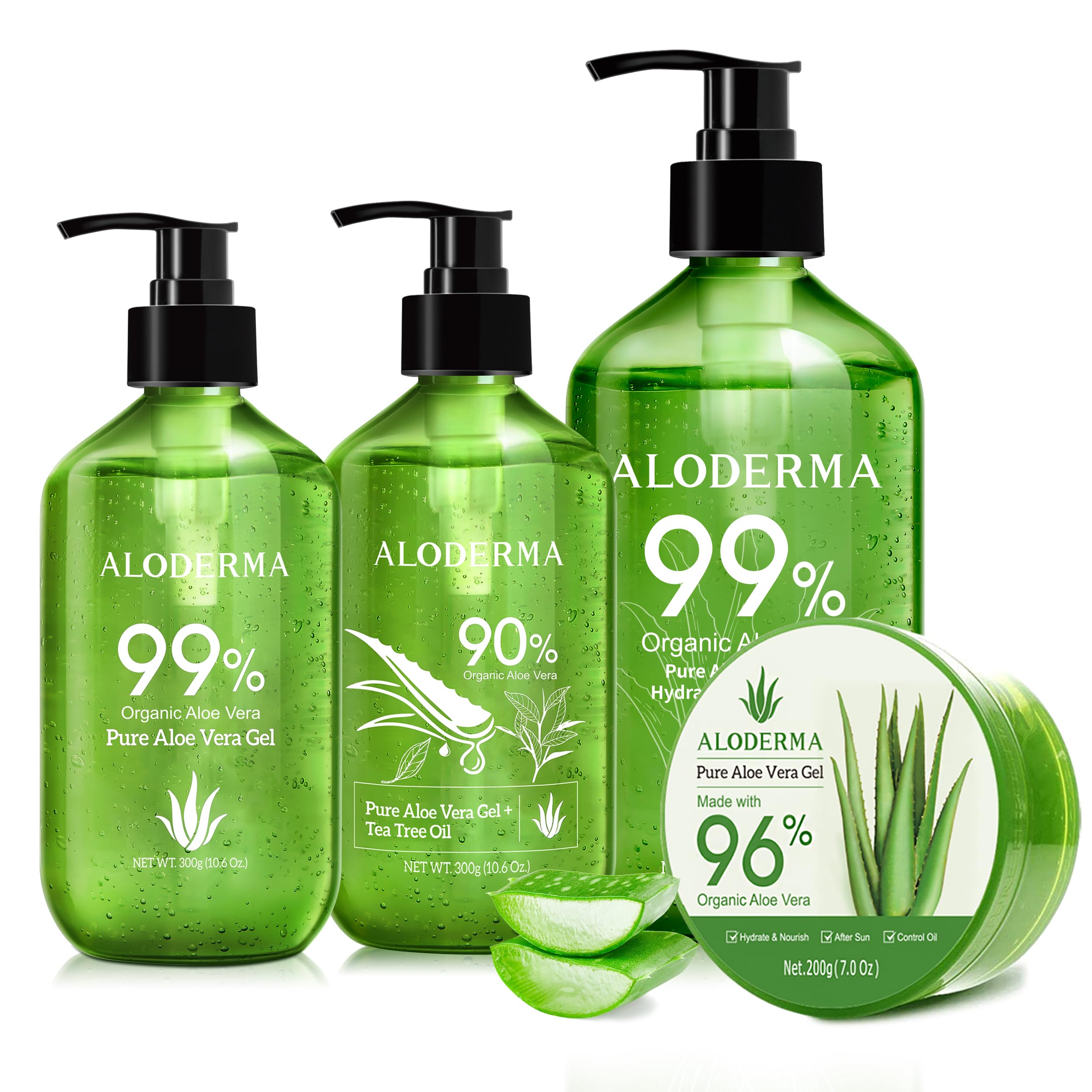 Aloderma Aloe Vera Gel Set 4 Pieces - 500g Aloe Vera Gel 300g Aloe Vera Gel 300g Aloe Vera Gel + Tea Tree Oil 200g Aloe Vera Gel