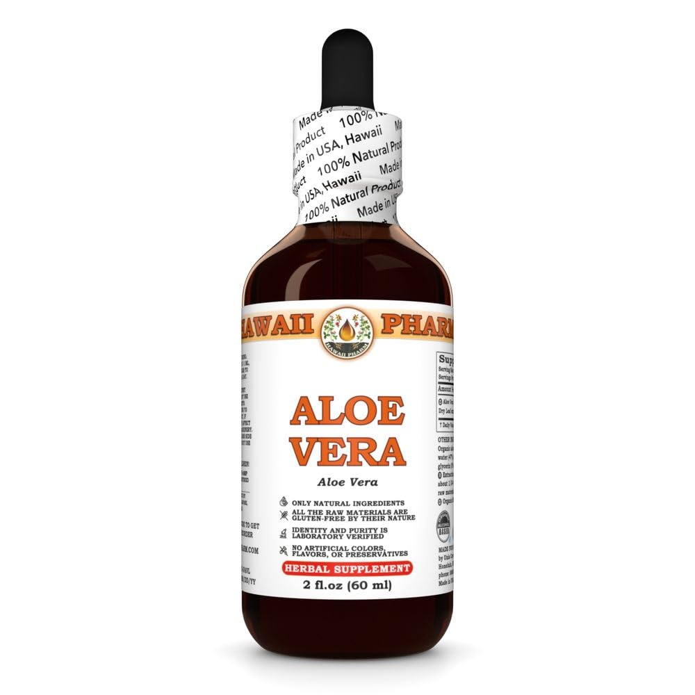 Made in the USA with Superior Quality: Proudly crafted in the USA (Hawaii), our Aloe Vera Extract uses select, high-quality ingredients sourced from trusted suppliers. Each batch undergoes rigorous laboratory testing to ensure it meets the highest standards of safety and potency. By choosing Hawaii Pharm, you are supporting American-made products and a brand dedicated to delivering the best in herbal extracts. 100 Natural Pure: Trust in Hawaii Pharm's commitment to excellence. Our Aloe Vera Extract is a 100 natural product, free from additives, colorants, flavorings, and sugars. This ensures you receive the purest form of the herb without any unwanted ingredients. Our rigorous quality control measures guarantee the highest standards of purity and effectiveness, providing you with a product you can trust. Superior Absorption and Easy Use: Our liquid Aloe Vera Extract offers superior absorption compared to tablets and capsules, ensuring your body quickly and fully benefits from its calming properties. Easy to use, simply mix it with water or your favorite beverage for convenient consumption. This makes it an ideal choice for those seeking quick and efficient results without the hassle of swallowing pills. Promotes Skin and Soothing Relief: Aloe Vera Leaf Extract is widely valued for its ability to provide soothing relief for the skin. Traditionally used to calm minor irritations and support natural recovery, aloe vera is a popular choice for those seeking refreshed and revitalized skin care solutions. Supports Digestive Comfort: Aloe Vera Leaf Extract has been traditionally used to promote balance and ease in the digestive system. Known for its natural compounds, aloe vera is appreciated for its ability to encourage regularity and soothe occasional discomfort. This botanical is a great addition to any wellness routine focused on digestive harmony.