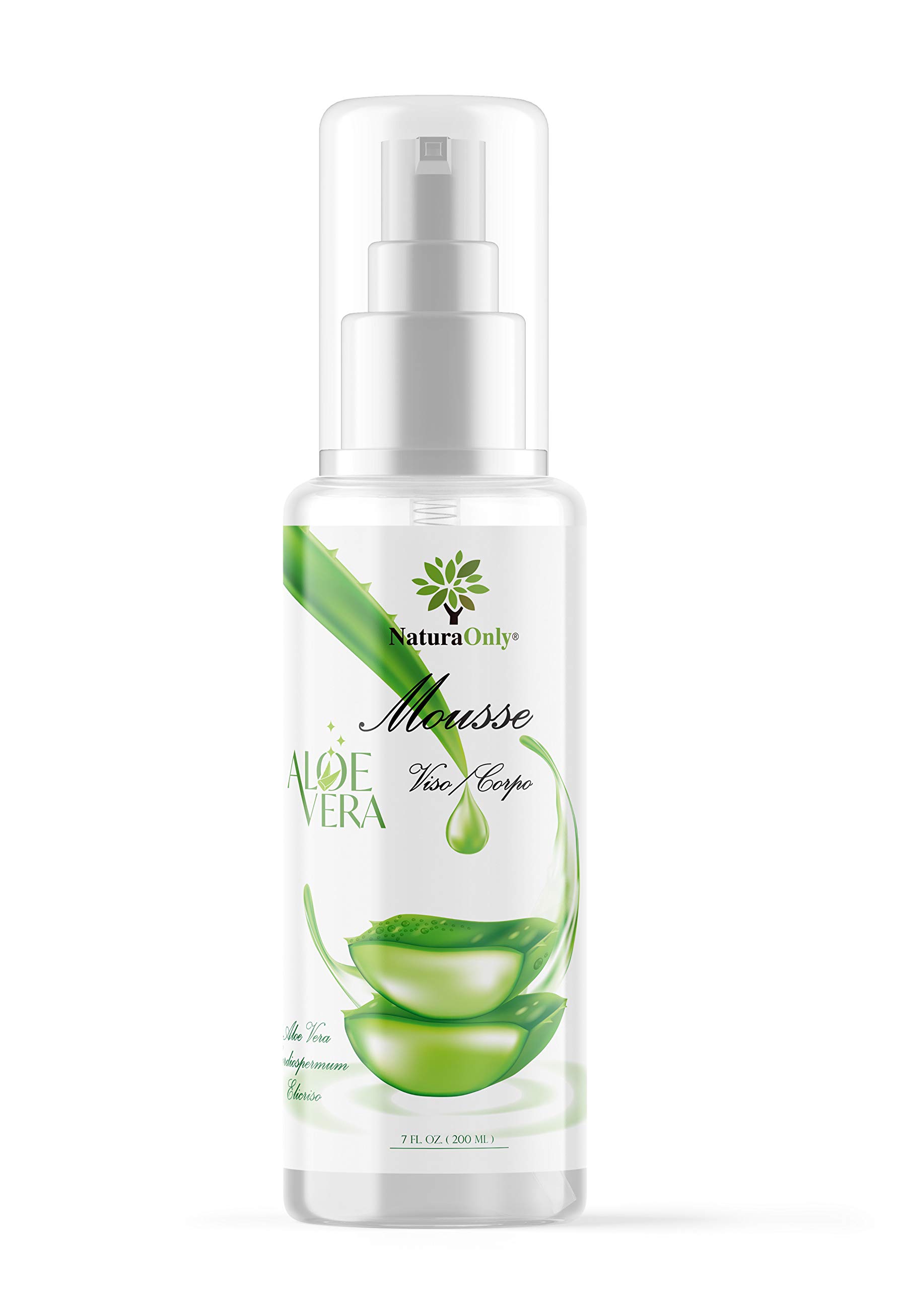 Aloe Vera Bio Mousse - Nettoyant délicat pour le visage et le corps, à base d'Aloe Vera biologique, d'Hélichryse biologique, de Cardiospermum halicacabum, de Panthénol et de Vitamine E.