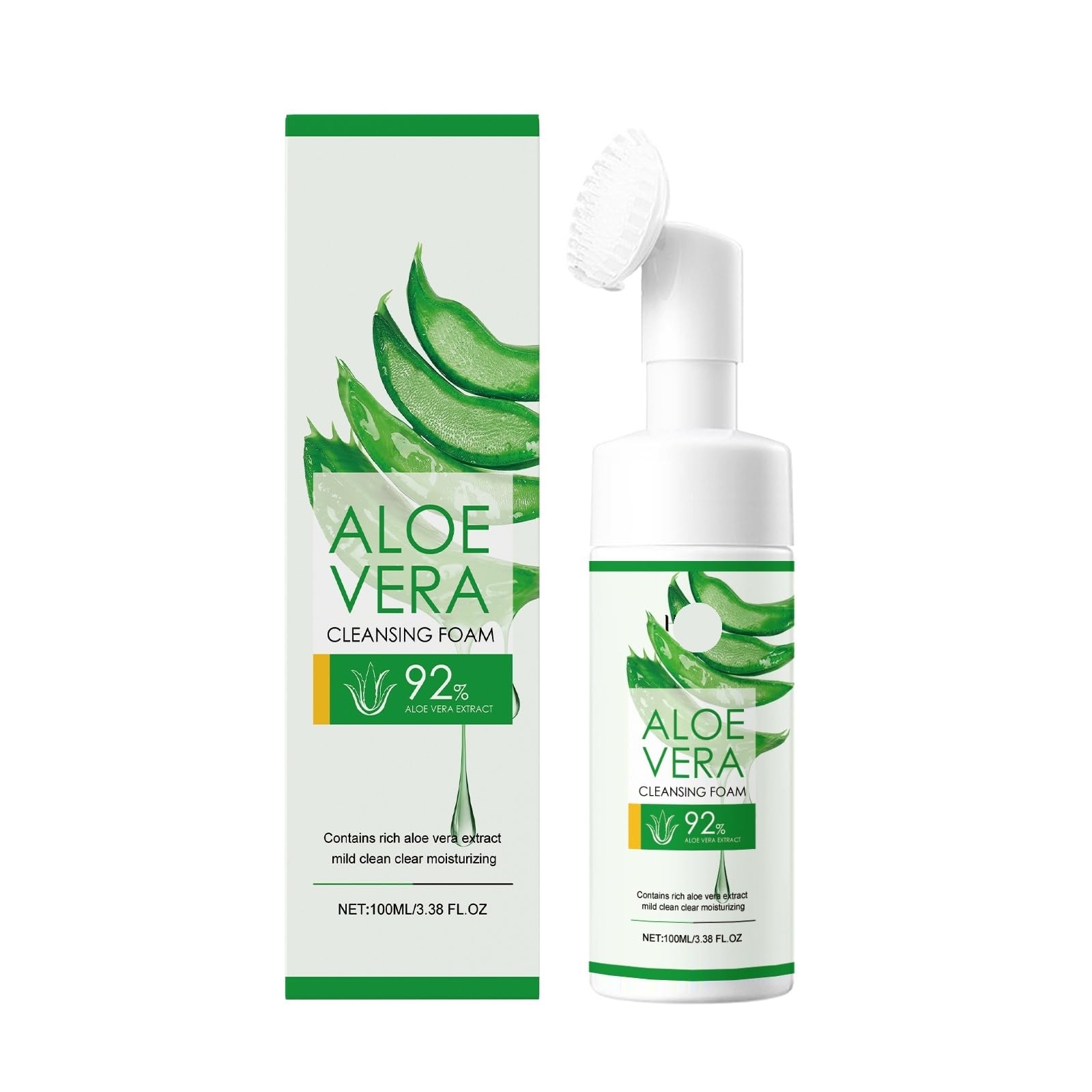 Discover the ultimate facial cleansing experience with our Aloe Vera Facial Cleansing Foam. Formulated with natural aloe vera extract, it provides gentle yet effective cleansing for all skin types. This cleansing foam is designed to soothe and calm your skin, reducing redness and irritation, making it ideal for sensitive skin. The fine, creamy foam works wonders in removing dirt, oil, and stubborn makeup, reaching deep into your pores to eliminate impurities and prevent blockages. At the same time, it offers excellent hydrating properties, locking in moisture to keep your skin soft, smooth, and free from tightness. By controlling excess oil, it helps maintain a balanced complexion throughout the day. Not only does it clean thoroughly, but it also brightens your skin and promotes an even skin tone. Regular use will leave your skin looking fresh, healthy, and radiantly beautiful. The easy 3-step application process makes it convenient for daily use, fitting seamlessly into your skincare routine. Upgrade your cleansing routine with our Aloe Vera Facial Cleansing Foam and enjoy the benefits of clean, hydrated, and glowing skin.Easy to Use: Simple 3-step process - prep your face, lather the foam, and rinse, making it perfect for daily skincare routine. Skin Brightening: Helps to remove impurities, brighten skin tone, and promote an even complexion, giving you a radiant glow. Hydrating Oil Balancing: Offers intense hydration while controlling excess oil, leaving your skin moisturized, supple, and non-tight after washing. Deep Cleansing: The fine, rich foam effectively removes dirt, oil, and makeup residue, unclogging pores to keep your skin fresh and breathable. Gentle Soothing: Infused with aloe vera, this cleansing foam calms and relieves sensitive skin, minimizing irritation for a comfortable cleansing experience.