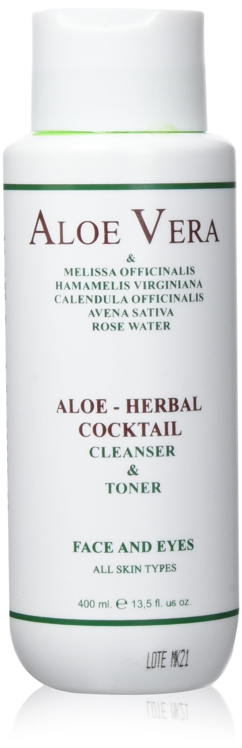 Canarias Cosmetics Aloe Herbal Cocktail Cleansing and Toning Lotion for all skin types - Also suitable for sensitive skin. The cleansing lotion gently removes makeup, dirt particles, and impurities from the face and eyes and has a refreshing and decongestant effect. Natural aloe vera, balsam, witch nut, calendula, oats, and rose water provide pH regulation and hydration. With daily use, the skin becomes softer, smoother, and firmer. The aloe vera-based cocktail is paraben-free.International products have separate terms and are sold from abroad and may differ from local products, including fit, age ratings, and language of product, labeling, or instructions. With daily use, skin feels softer and firmer. Natural aloe vera, balm, witch hazel, calendula, oatmeal, and rose water provide pH regulation and hydration. Gently removes makeup, dirt, and impurities in the eye and eye area, refreshes and soothes swelling. Cleansing lotion and toner for all skin types, also suitable for sensitive skin. Canarias Cosmetics Aloe Herbal Cocktail Lotion nettoyante et tonifiant pour tous les types de peau - Convient également aux peaux sensibles. La lotion nettoyante élimine en douceur le maquillage, les particules de saleté et les impuretés du visage et des yeux et a un effet rafraîchissant et décongestionnant. L'aloe vera naturel, le baume, la noix de sorcière, le calendula, l'avoine et l'eau de rose offrent une régulation et une hydratation du pH. Avec une utilisation quotidienne, la peau devient plus douce, plus douce et plus ferme. Le cocktail à base d'aloe vera est sans paraben.Les produits internationaux ont des termes distincts, ils sont vendus de l'étranger et peuvent différer des produits locaux, y compris l'ajustement, l'âge et la langue du produit, l'étiquetage ou les instructions. Lors d'une utilisation quotidienne, la peau dent plus douce et plus ferme. L'aloe vera naturel, le baume, l'hamamélis, le calendula, l'avoine et l'eau de rose assurent la régulation du pH et l'hydratation. Élimine en douceur le maquillage, les parties de saleté et les impuretés dans la zone du age et des yeux, rafraîchit et gonflement. Lotion nettoyante et tonique pour tous les types de peau, connt également aux peaux sensibles.