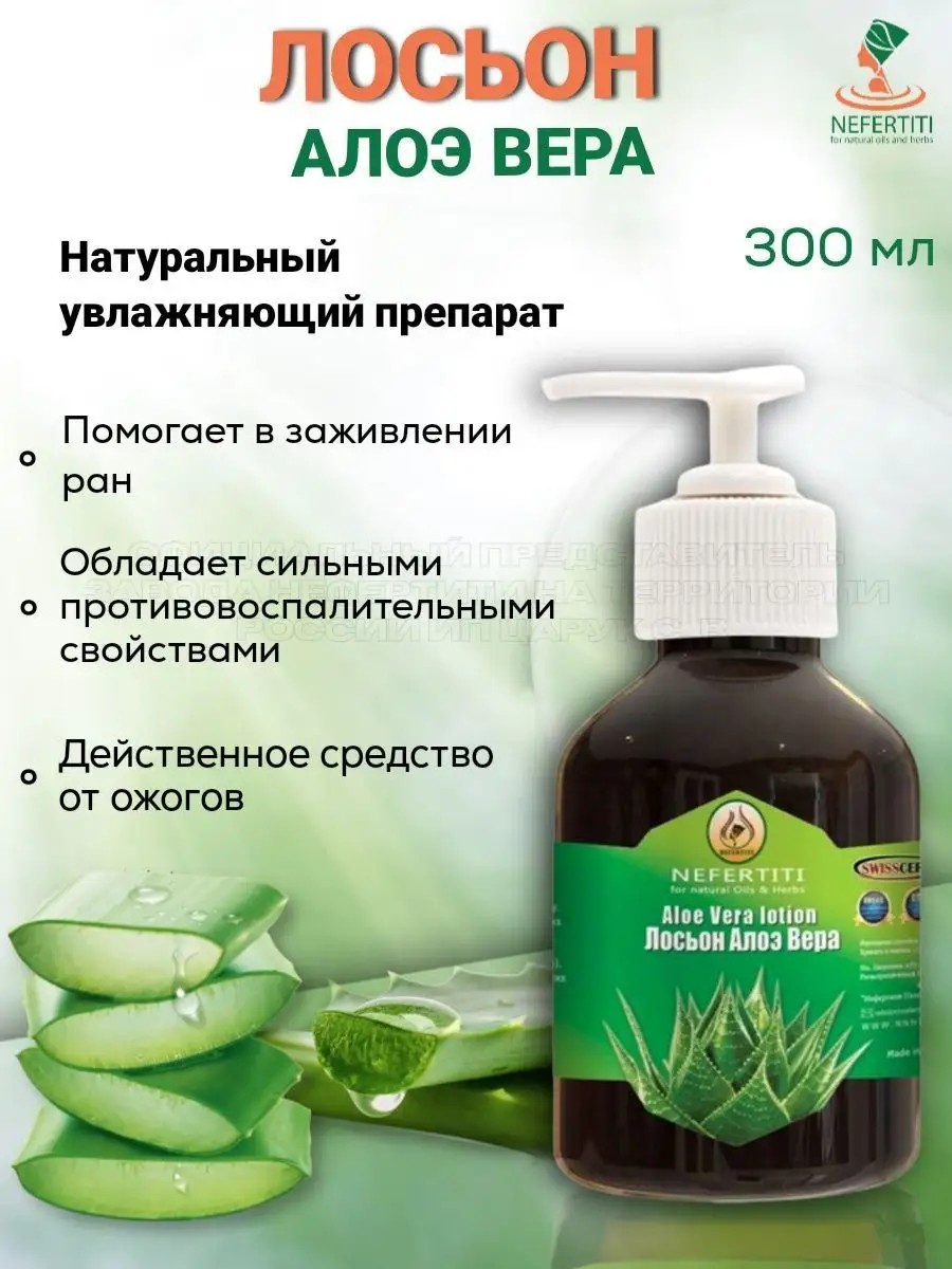 Лосьон Алоэ Вера. INCI: Алоэ Барбаденсис Листовой сок. Цвет: Кремово-белый. Запах: свежий легкий аромат цитрусовых и цветов. Физическое состояние: Легкая кремовая текстура. Натуральный: Да. Однородный: 100%. Сертифицирован ISO: Да. Бренд: Nefertiti for natural oils and herbs. Страна производитель: Египет.