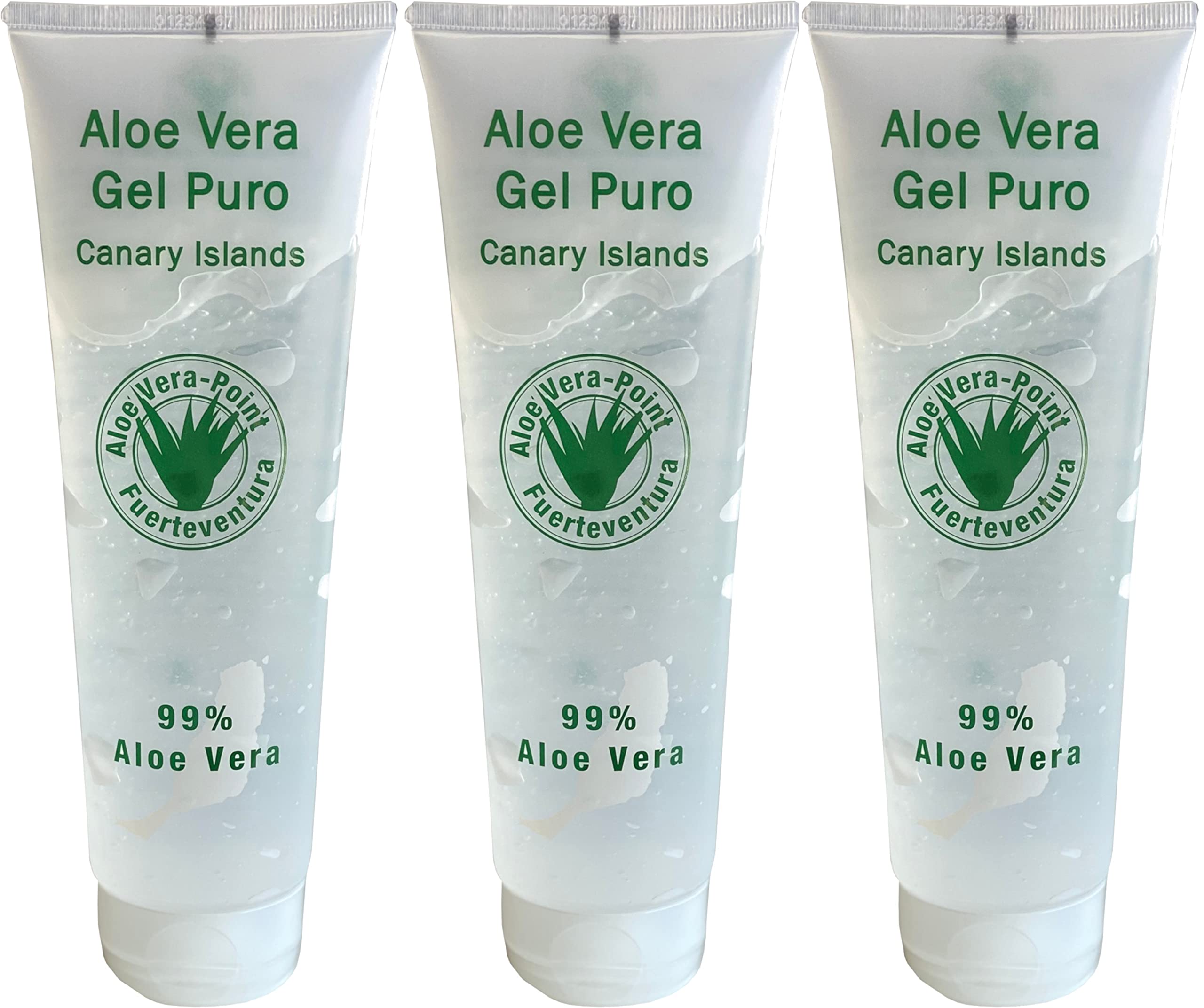 Cell-regenerating and preventative anti-aging treatment with healing effects. Relieves pain, itching, irritation, and inflammation, nourishing and repairing. Ideal after sun, wind, or cold exposure after waxing or shaving. Helpful for psoriasis, eczema, and other skin conditions. Apply to the skin with a light massage. For topical use only. If you experience irritation or excessive dryness, discontinue use. Natural product. Once opened, it is best to store it in the refrigerator. Produced in Fuerteventura. INGREDIENTS Aloe Barbadensis 99 , Sodium Levulinate, Potassium Sorbate, Xanthan Gum, Citric Acid, Ascorbic Acid, Tocopheryl Acetate.The gel may darken in color due to its high content of pure aloe vera gel, but this does not affect the product's quality. Produced in Fuerteventura. Grown, processed, and packaged in Fuerteventura. Cell regenerating and preventative anti-aging with healing effects. Fresh, organic aloe vera with no added water. Aloe vera is known as a humectant and possesses anti-inflammatory and analgesic properties. This allows the skin to heal quickly from burns.Aloe Vera Point Gel 99 Aloe Vera 250ml - 3 unitésDESCRIPTION DU PRODUIT DESCRIPTION DU PRODUIT Régénérant cellulaire et préventif anti-âge avec effets curatifs. Soulage les douleurs, les démangeaisons, l'irritation et l'inflammation, nourrissant et réparant. Idéal après l'exposition au soleil, au vent ou au froid après la cire ou le rasage. Utile pour le psoriasis, l'eczéma et d'autres conditions de la peau. Appliquer sur la peau avec un léger massage. Usage topique. Si vous constatez une irritation ou une sécheresse excessive, arrêtez l'application. Produit naturel Une fois ouvert, il est préférable de le conserver au réfrigérateur. Produit à Fuerteventura INGRÉDIENTS Aloe Barbadensis 99 , Sodium levulinate, Pottassium sorbate, Xanthan Gum, Citric Acid, Ascorbic acid, Tocopheryl acétate.La couleur du gel peut s'assombrir en raison de la haute teneur en gel d'aloe vera pur et n'interfère pas avec la qualité du produit. Produit à FUERTEVENTURA. Cultivé, élaboré et emballé à Fuerteventura. Régénérant cellulaire et préventif anti-âge avec effets curatifs. Aloe frais biologique sans ajout d'eau. L'Aloe Vera est connu comme humectant et possède des propriétés anti-inflammatoires et analgésiques. Cela permet à la peau de guérir rapidement des brûlures.