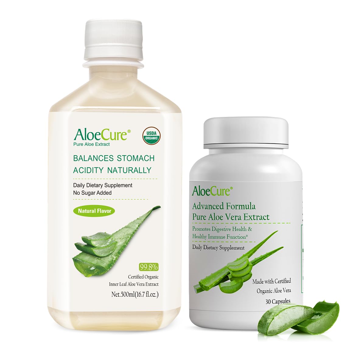 AloeCure Digestion Support Pack - Natural Aloe Juice 1btl, Aloe Vera Capsules 30 caps