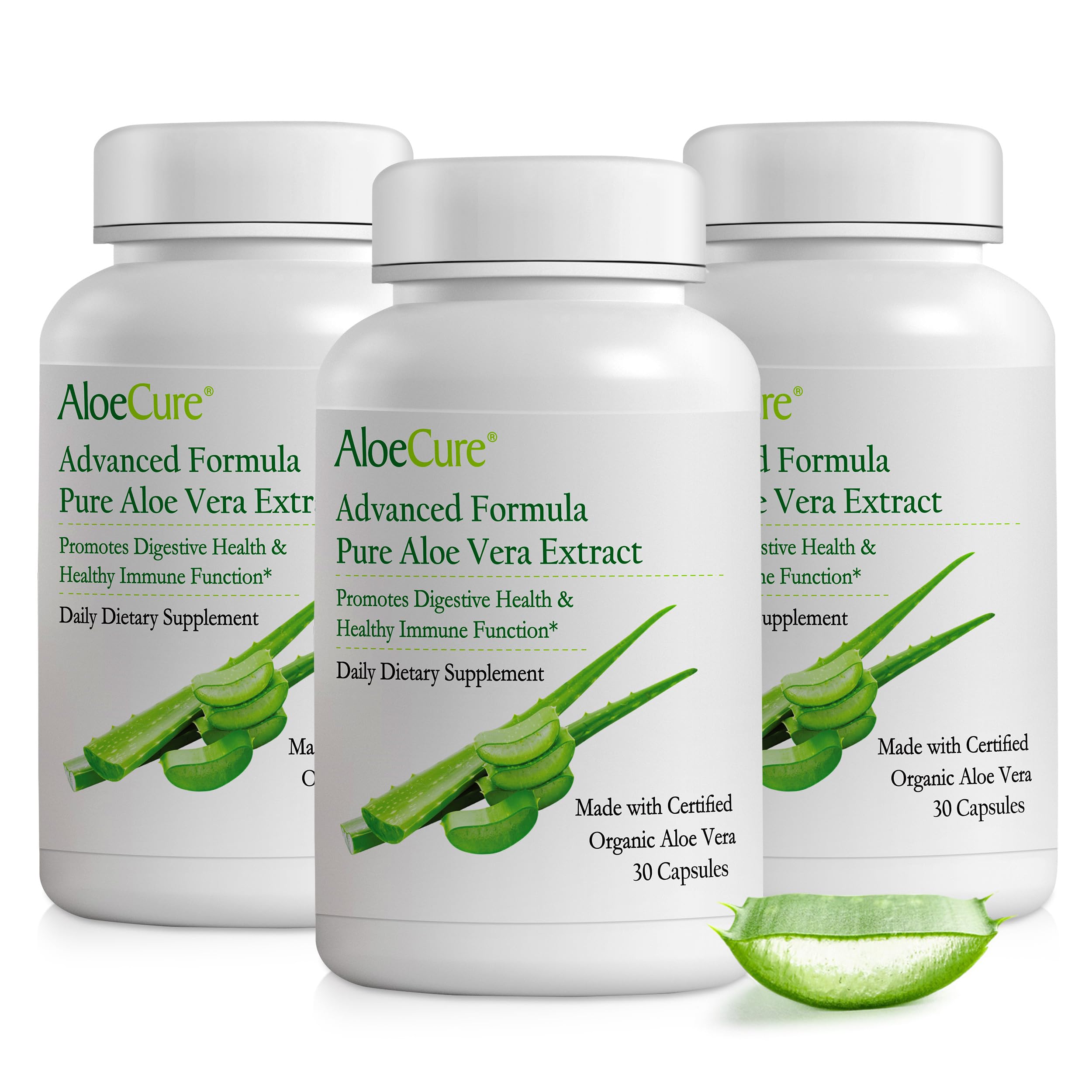 AloeCure Organic Aloe Vera Capsules 160 000mg Inner Aloe Leaf Equivalent per Serving Support Gut Digestive & Immune Health Helps Maintain Balanced Stomach Acidity Aloin Free 30Caps x 3Btl