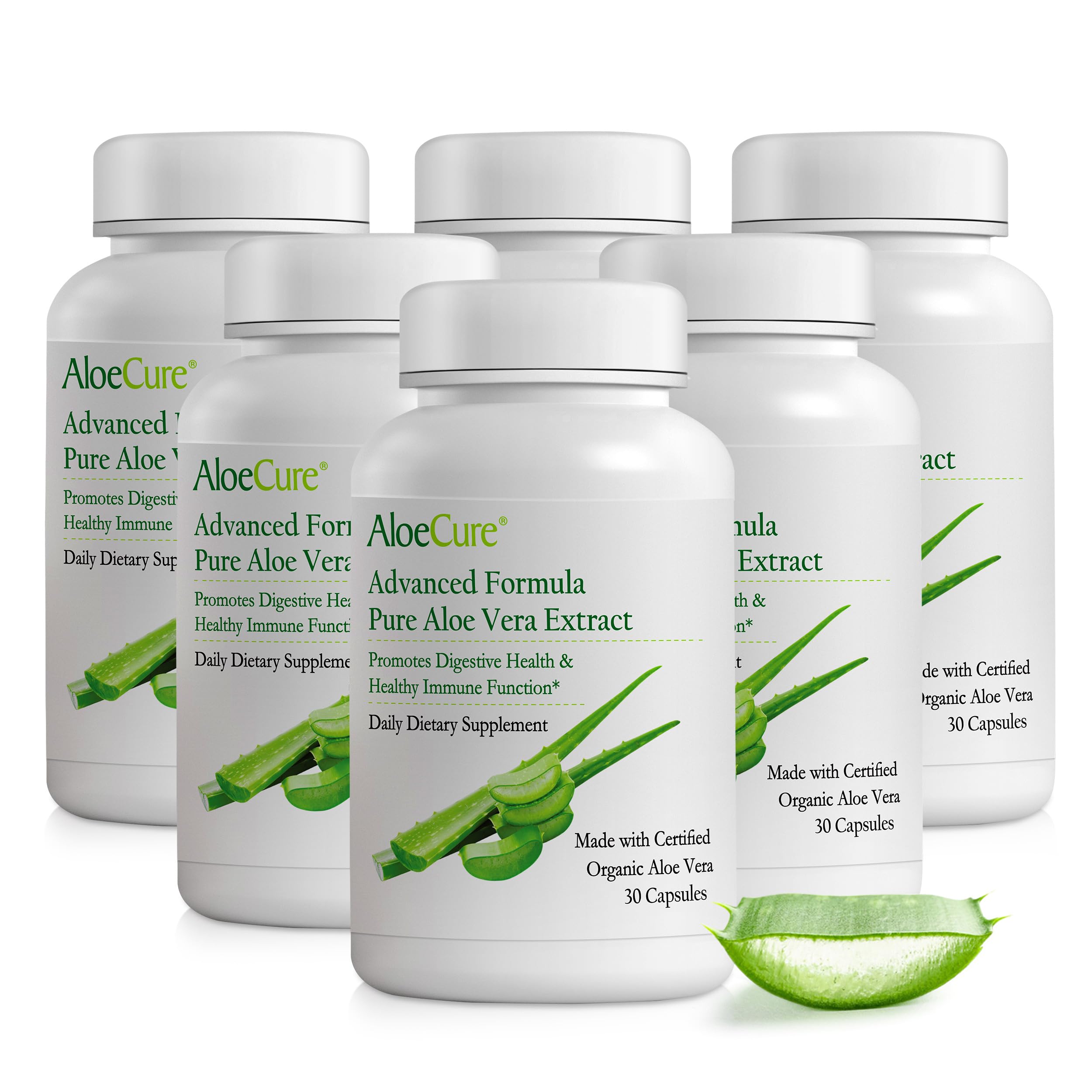 AloeCure Organic Aloe Vera Capsules 160 000mg Inner Aloe Leaf Equivelant per Serving Support Gut Health & Digestive Comfort Stomach Acid Buffer Natural Immune Supplement 30 Caps x 6Btls