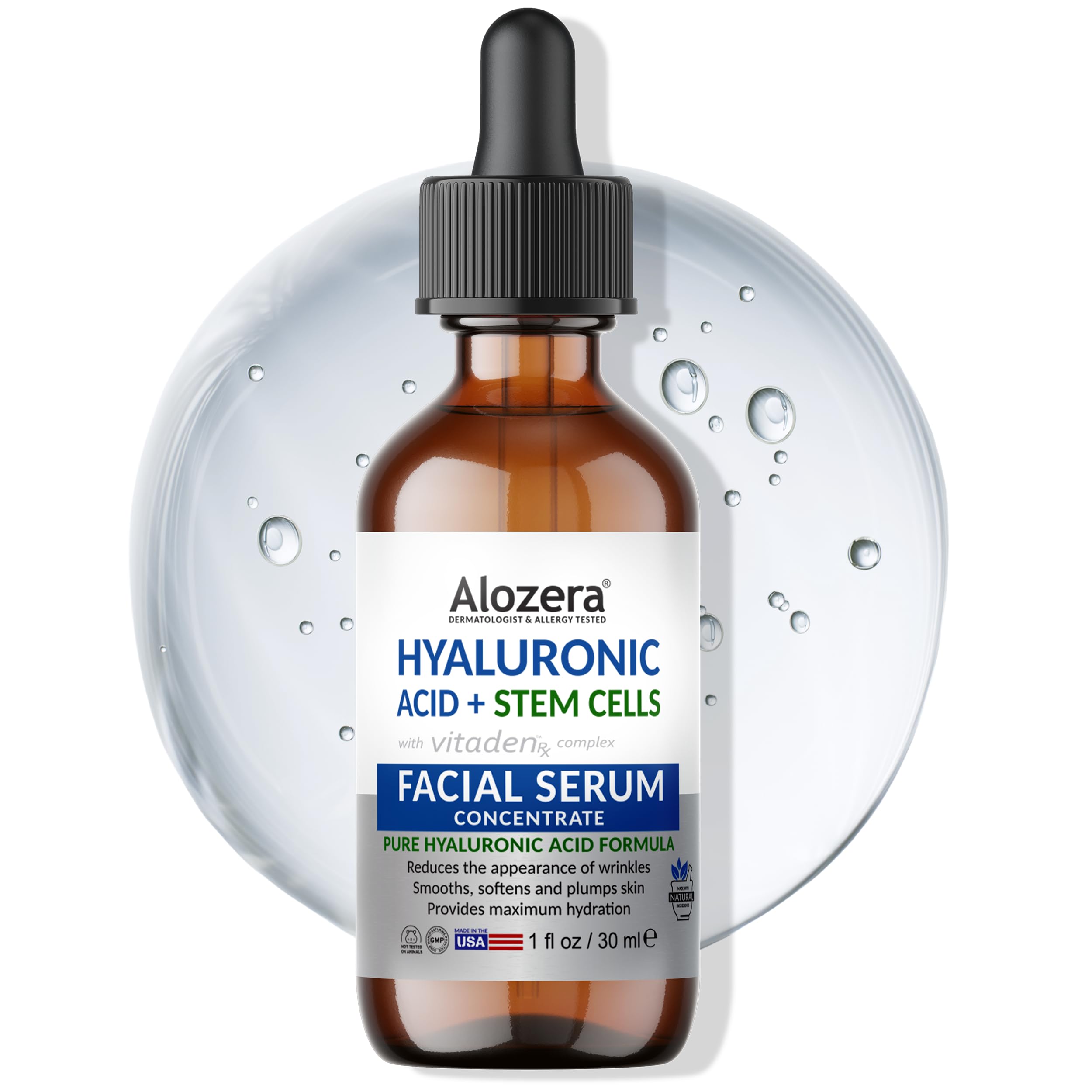 Alozera Pure Hyaluronic Acid Serum with Stem Cells for Face & Neck Deep Hydration Facial Moisturizer for Plumper & Smoother Skin Concentrated Anti-Aging Serum Day & Night
