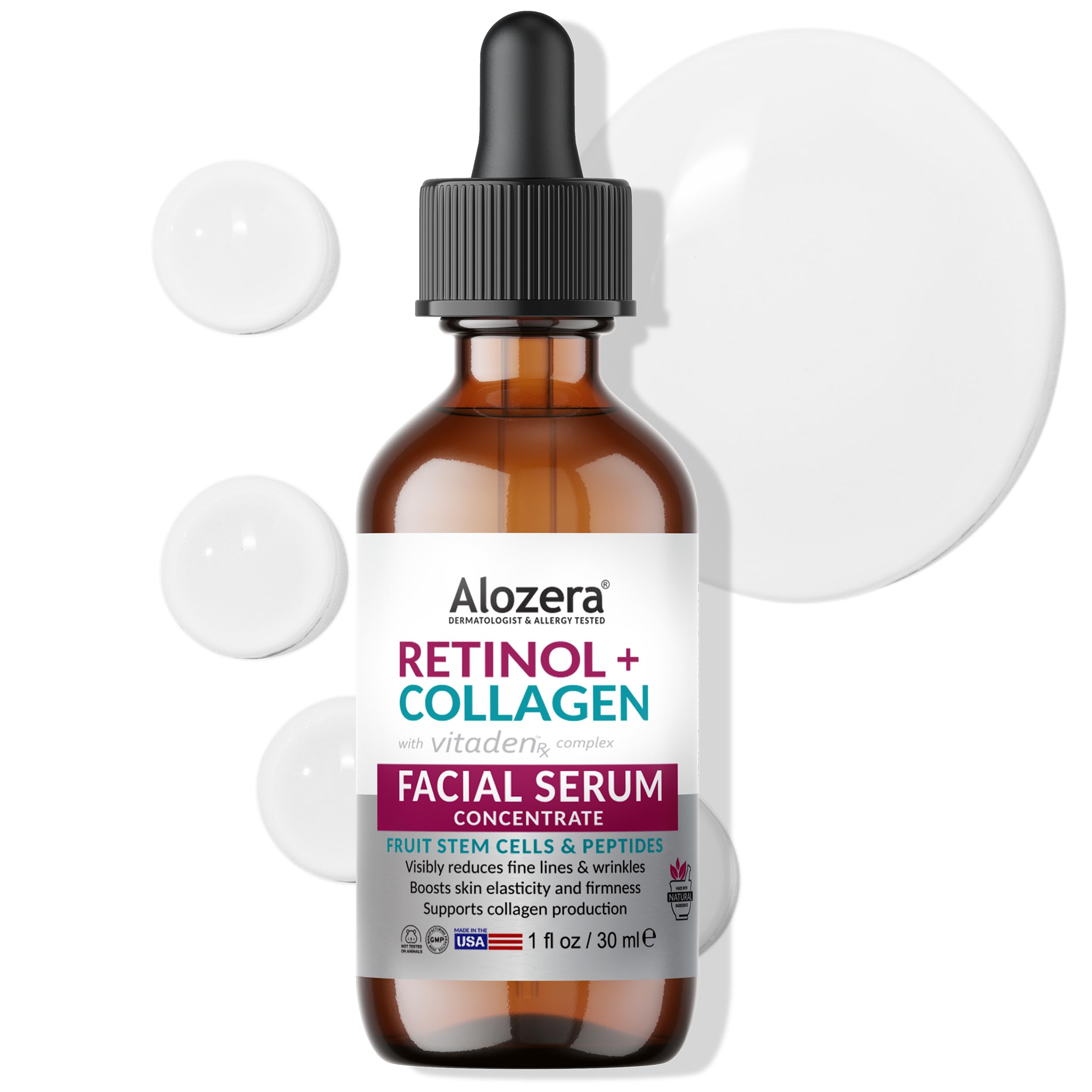 Alozera Retinol Collagen Serum with Stem Cells for Face & Neck Anti Aging Wrinkle Serum for Firmer Tighter Smoother & Renewed Skin Concentrated Gentle & Effective Day & Night