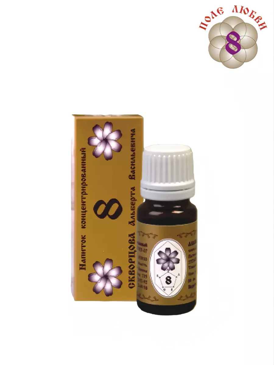 Напиток концентрированный 8 способствует очищению и быстрой эпителизации гнойных, длительно незаживающих ран, ожогов и язв, предотвращает нагноение, эффективен при заболеваниях почек, урогенитальной сферы, ускоряет сроки восстановления при переломах костей и других травмах, восстанавливает эндокринную систему, помогает при новообразованиях, способствует восстановлению иммунитета и обмена веществ.