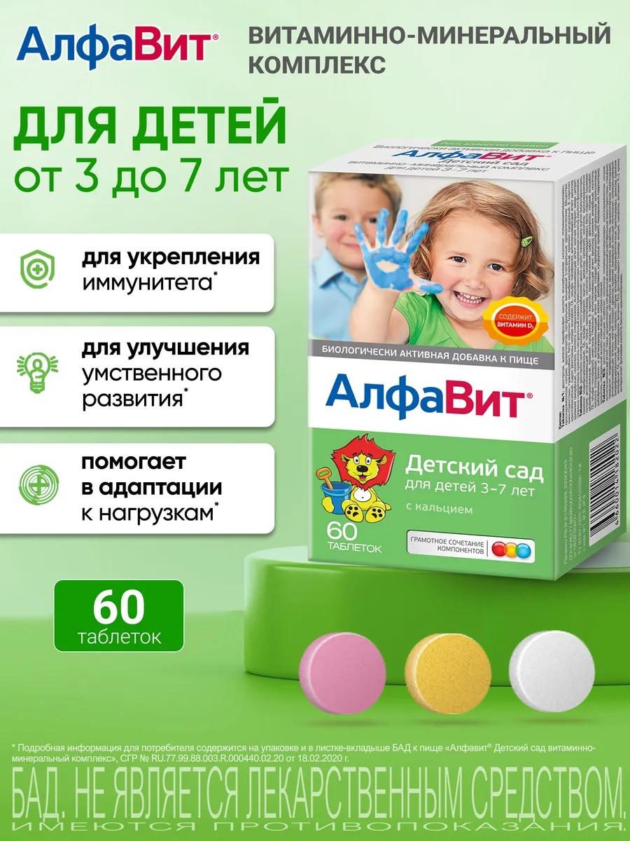 | Trade name | biologically active food supplement "Alphabet® Kindergarten vitamin and mineral complex" (a set of three chewable tablets with different flavors and colors: 0.79 g - No. 1, 0.80 g - No. 2, 0.92 g - No. 3) |