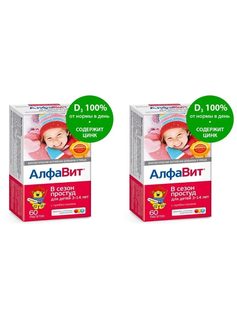 Алфавит - витаминно-минеральные комплексы алфавит в сезон простуд д дет n60 жев табл - 2шт