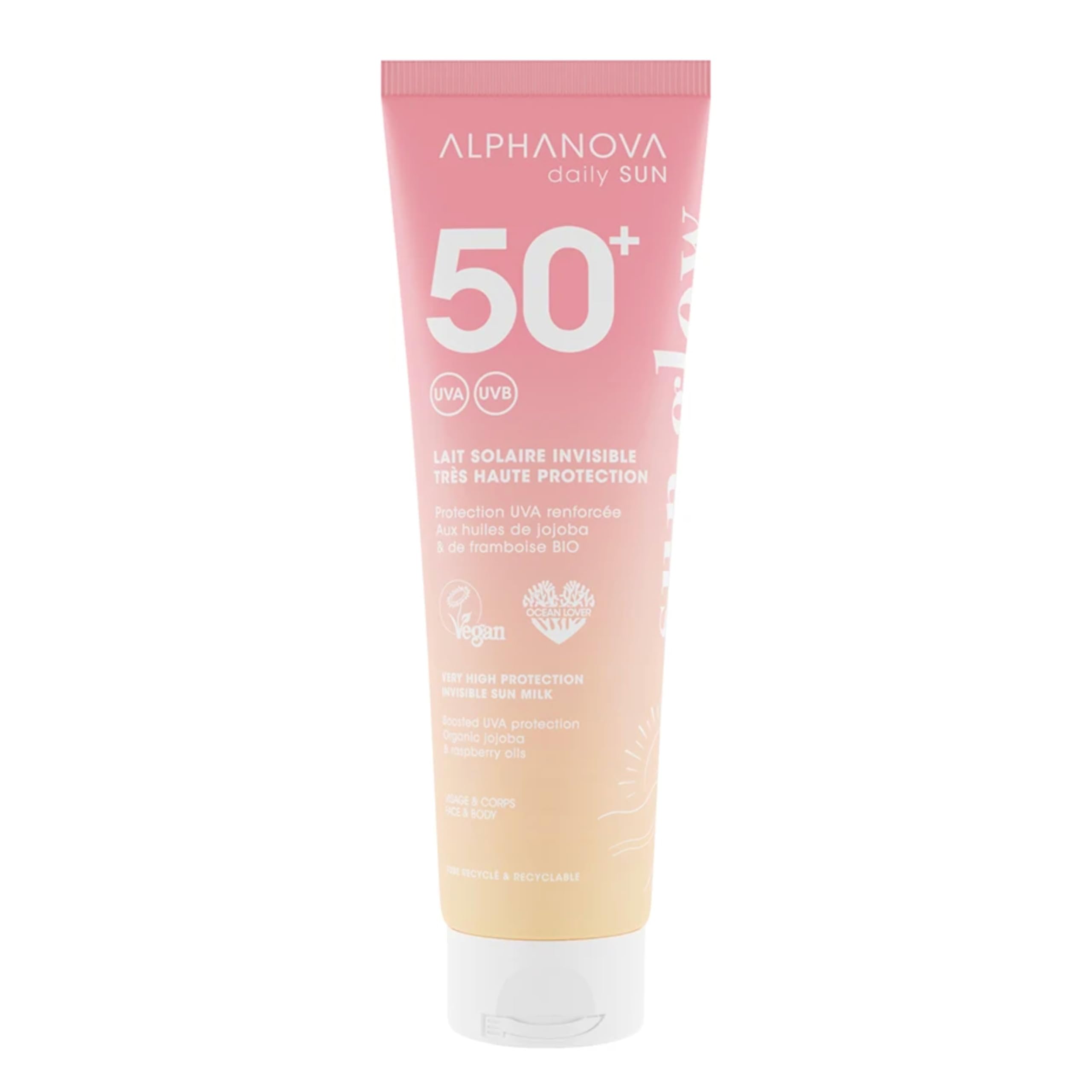 Alphanova Daily Sun SPF50 Sunscreen Lotion offers very high protection against UV rays, sunburn, dark spots, and premature skin aging. Its 100 invisible formula leaves no white cast and features a UVA Boost complex for 2x more protection against skin aging, dark spots, and skin cancer. INGREDIENTS Organic Aloe Barbadensis Leaf Juice, Triethyl Citrate, Diethylamino Hydroxybenzoyl Hexyl Benzoate, Bis-Ethylhexyloxyphenol Methoxyphenyl Triazine, Dicaprylyl Carbonate, Ethylhexyl Triazone, Propanediol, Polyglyceryl-6 Stearate, Diethylhexyl Butamido Triazone. Ingredients: fragrance, glycerin stearate, organic glycerin, organic Simmondsia Chinensis (Jojoba) seed oil, pentylene glycol, potassium cetyl phosphate, Brassica Campestris Aleurites Fordii (Aleurites fordii) oil copolymer, organic Rubus Idaeus (Rubus) seed oil, Helianthus Annuus (Sunflower) seed oil, glyceryl caprylate, polyglyceryl-6 behenate, sodium anisate, behenyl alcohol, xanthan gum, benzoic acid, water, sodium hydroxide, tocopherol. Directions for use: Apply 30 minutes before sun exposure, covering 2 mg cm² of body surface. Reapply every 2 hours or after swimming sweating. Suitable for the body and face. Use in combination with other sun protection measures such as protective clothing and shade. Safety warning: Avoid contact with eyes. See moreMade in France: Alphanova Daily Sun SPF50 sunscreen lotion is made in France to ensure product safety and traceability. Bottle made from recycled and recyclable materials. Naturally derived ingredients: formulated with 74 naturally derived ingredients and rich in organic active ingredients. Enriched with organic raspberry oil and organic jojoba oil. Monoi sun fragrance. UVA BOOST: reinforced and invisible protection thanks to the latest generation of environmentally friendly organic filters. Waterproof. Non-greasy and non-sticky texture. Double the protection of the European standard. UVB 50 UVA 46. SPF 50 Sunscreen Lotion: Alphanova Daily Sun SPF50 sunscreen lotion offers very high, reinforced protection against UV rays, dark spots, and premature skin aging. Skin is nourished and protected. No white cast.ALPHANOVA Daily Sun Lait Solaire SPF 50 Invisible Visage et Corps Protection UVA Renforcée 150ml Sans Traces BlanchesDESCRIPTION DU PRODUIT DESCRIPTION DU PRODUIT Le lait solaire SPF50 Alphanova Daily Sun offre une très haute protection contre les rayons UV, les coups de soleil, les taches sombres et le vieillissement prématuré de la peau. Formule 100 invisible sans traces blanches, complexe UVA Boost pour une protection 2x plus contre le vieillissement cutané, les taches sombres et le cancer de la peau. INGRÉDIENTS Aloe Barbadensis Leaf Juice Bio, Triethyl Citrate, Diethylamino Hydroxybenzoyl Hexyl Benzoate, Bis-Ethylhexyloxyphenol Methoxyphenyl Triazine, Dicaprylyl Carbonate, Ethylhexyl Triazone, Propanediol, Polyglyceryl-6 Stearate, Diéthylhexyl Butamido Triazone. zone. e, parfum, stéarate de glycérine, glycérine bio, huile de graines de Simmondsia Chinensis Bio, Pentylene Glycol, Potassium Cetyl Phosphate, Brassica Campestris Aleurites Fordii Oil Copolymer, Rubus Idaeus Seed Oil Bio, Helianthus Annuus Seed Oil, Glyceryl Caprylate, Polyglyceryl-6 Behenate Sodium Anisate, Behenyl Alcohol, Xanthane Gum, Benzoic Acid, Aqua, Sodium Hydroxide, Tocopherol. MODE D'EMPLOI Appliquer 30 minutes avant l'exposition au soleil, couvrir 2 mg cm² de surface corporelle, réappliquer toutes les 2 heures ou après la natation la transpiration, convient pour le corps et le visage, utiliser en combinaison avec d'autres mesures de protection solaire telles que des vêtements de protection et des ombres. AVERTISSEMENT DE SÉCURITÉ Éviter tout contact avec les yeux. Voir plusFabriqué en France : le lait solaire SPF50 de Alphanova Daily Sun est fabriqué en France pour assurer la sécurité et la traçabilité du produit. Bouteille fabriquée à partir de matériaux recyclés et recyclables. Ingrédients d'origine naturelle : formulé avec 74 d'ingrédients d'origine naturelle et riche en actifs biologiques. Enrichi en huile de framboise bio et en huile de jojoba bio Monoï parfum soleil. UVA BOOST : protection renforcée et invisible grâce à des filtres organiques de dernière génération respectueux de l'environnement. Waterproof Texture non grasse et non collante. Double protection que la norme européenne. UVB 50 UVA 46. Lait Solaire FPS 50 : le lait solaire SPF50 de Alphanova Daily Sun offre une très haute protection renforcée contre les rayons UV, les taches brunes et le vieillissement prématuré de la peau. La peau est nourrie et protégée. Sans traces blanches.