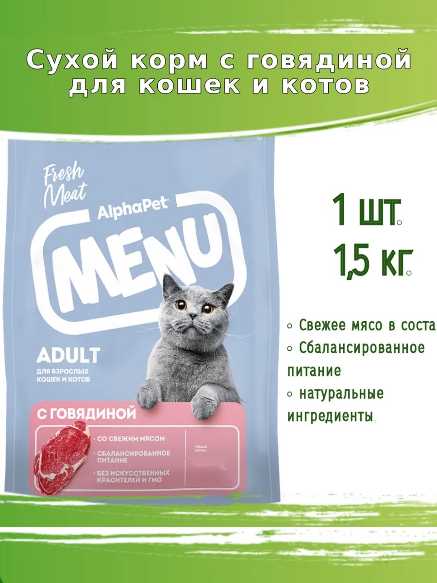 AlphaРet Корм для кошек Альфапет Menu с говядиной 1,5кг