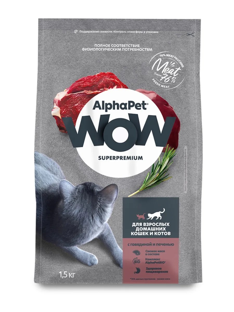 AlphaPet Корм для кошек, с говядиной и печенью 1,5 кг