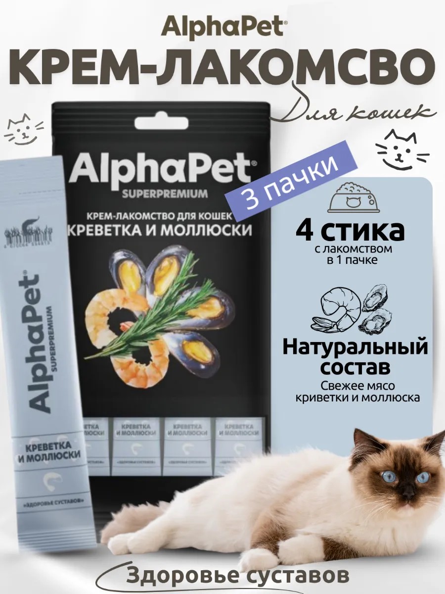 AlphaPet Крем-лакомство для кошек креветка и моллюски, 3 шт