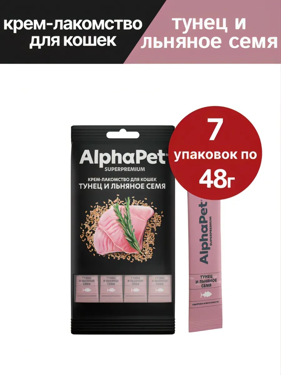AlphaPet Крем-лакомство для кошек тунец и семена льна 7шт по 48г