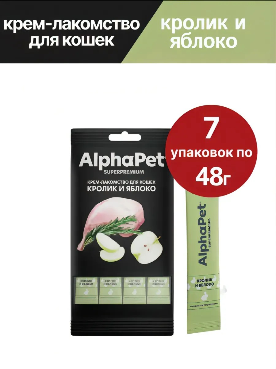 AlphaPet Крем-лакомство для кошек с кроликом и яблоком 7шт по 48г