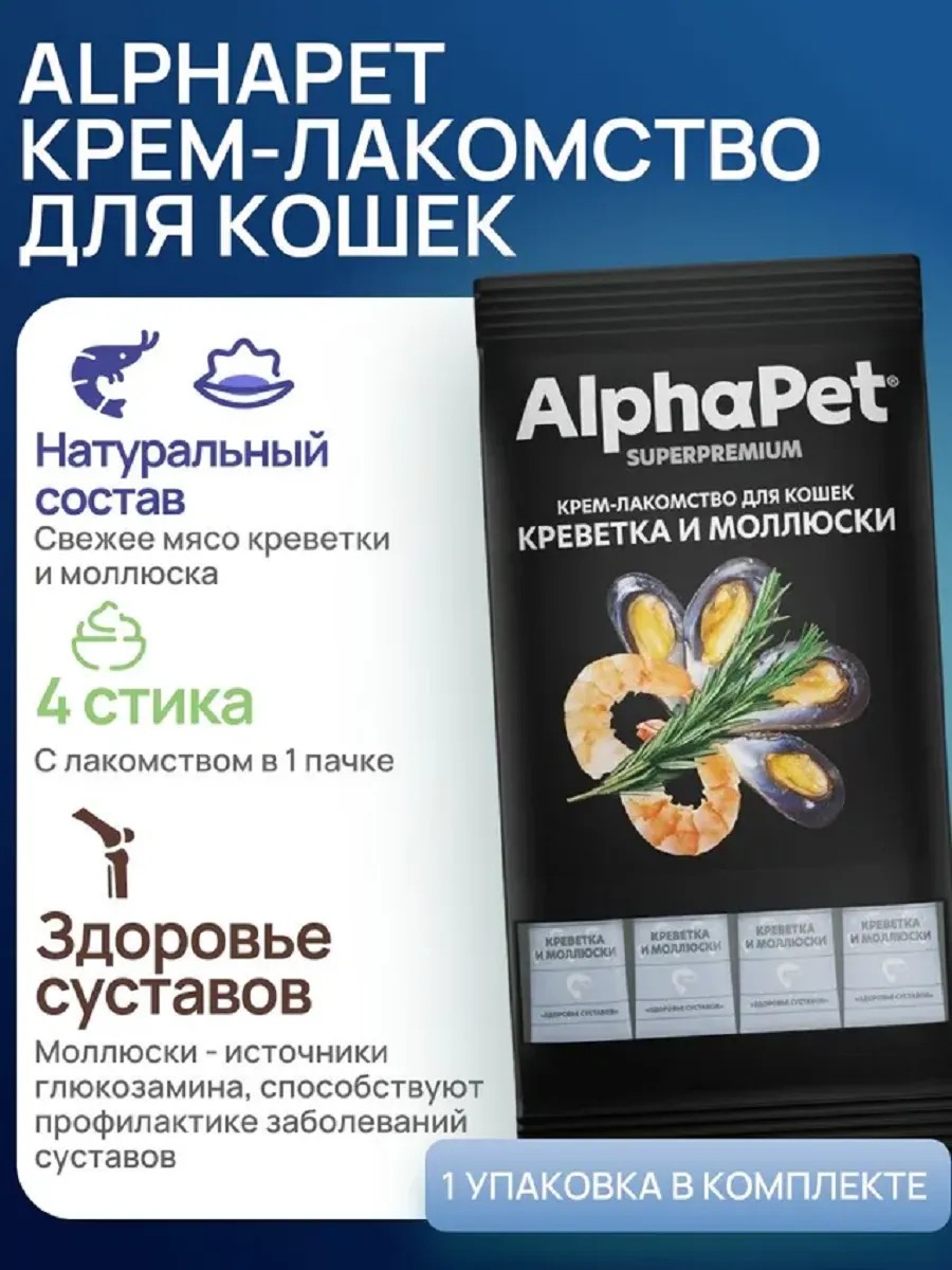 AlphaPet Крем-лакомство для кошек с креветкой и моллюсками 4*12гр