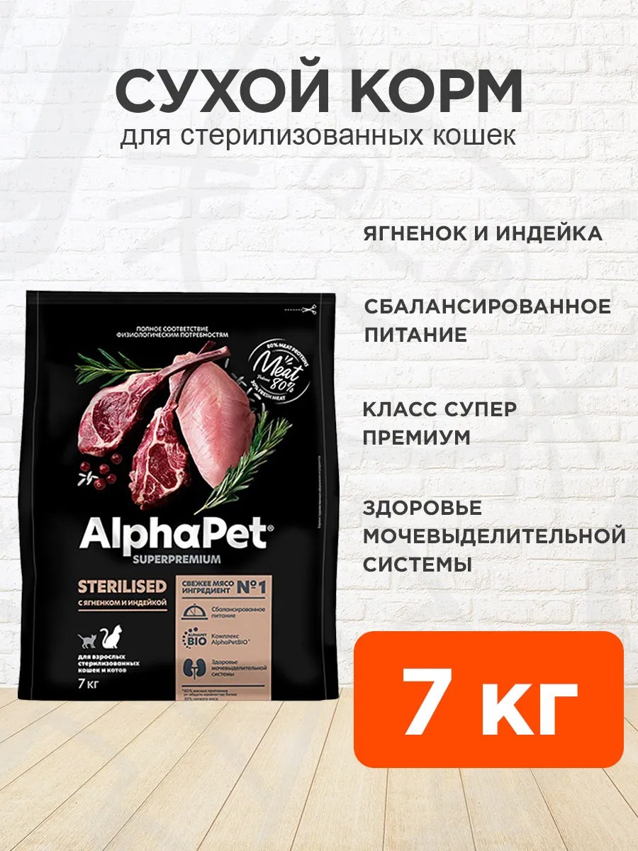 AlphaPet Корм для кошек сухой для стерилизованных ягненок 7 кг