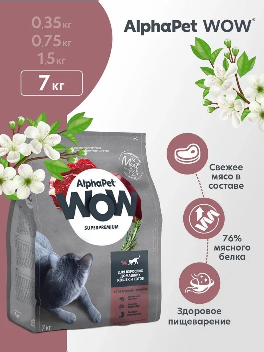 AlphaPet AlphaPet Сухой корм WOW для взрослых кошек с говядиной и печенью 7 кг
