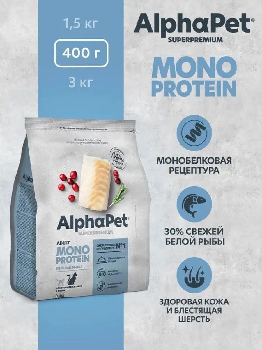 AlphaPet Сухой корм для кошек MONOPROTEIN Superpremium рыба 400 гр