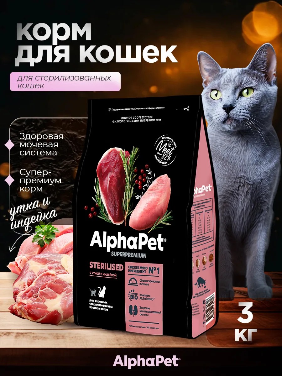 AlphaPet Сухой корм для кошек STERILISED утка и индейка 3 кг