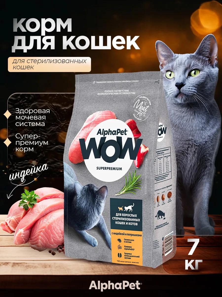 AlphaPet Сухой корм для кошек WOW STERILISED индейка 7 кг