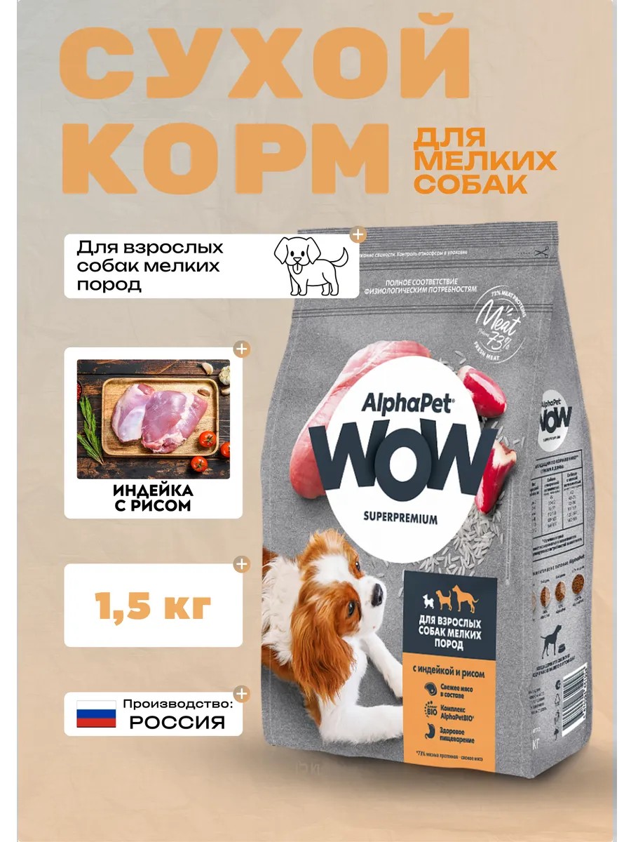 AlphaPet Сухой корм для собак мини с индейкoй и рисом 1,5 кг